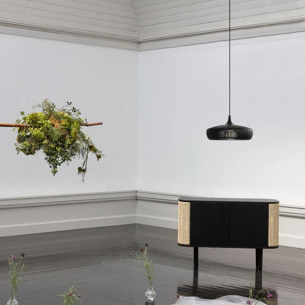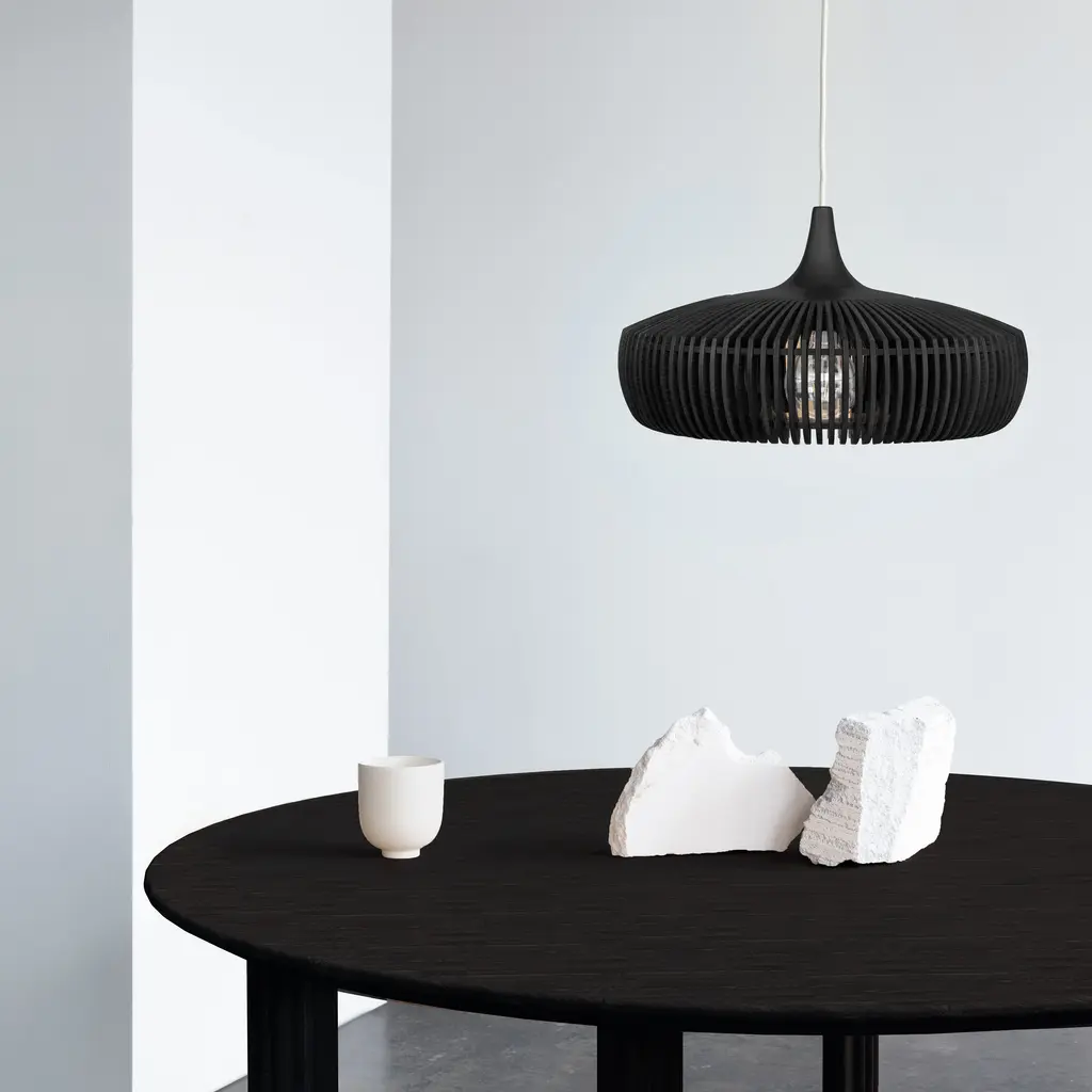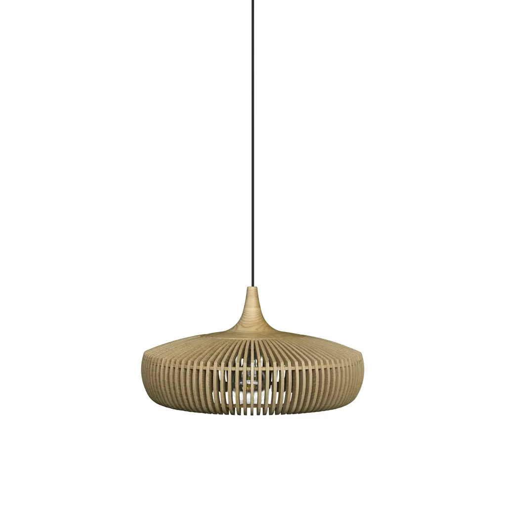 Designed with laser-cut wooden lamellae in ash and oak veneer, the Clava Dine Wood Pendant features a solid oak top, creating a unique and intricate pattern. The minimal distance between each lamella ensures a precise and elegant design, casting beautiful rays of light and creating a sculptural focal point. This pendant is available in natural oak, dark oak, and black oak.