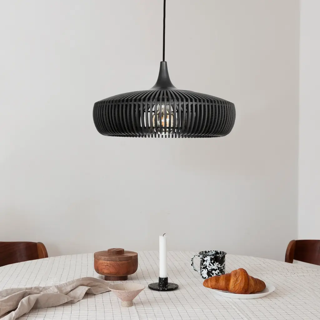 Designed with laser-cut wooden lamellae in ash and oak veneer, the Clava Dine Wood Pendant features a solid oak top, creating a unique and intricate pattern. The minimal distance between each lamella ensures a precise and elegant design, casting beautiful rays of light and creating a sculptural focal point. This pendant is available in natural oak, dark oak, and black oak.