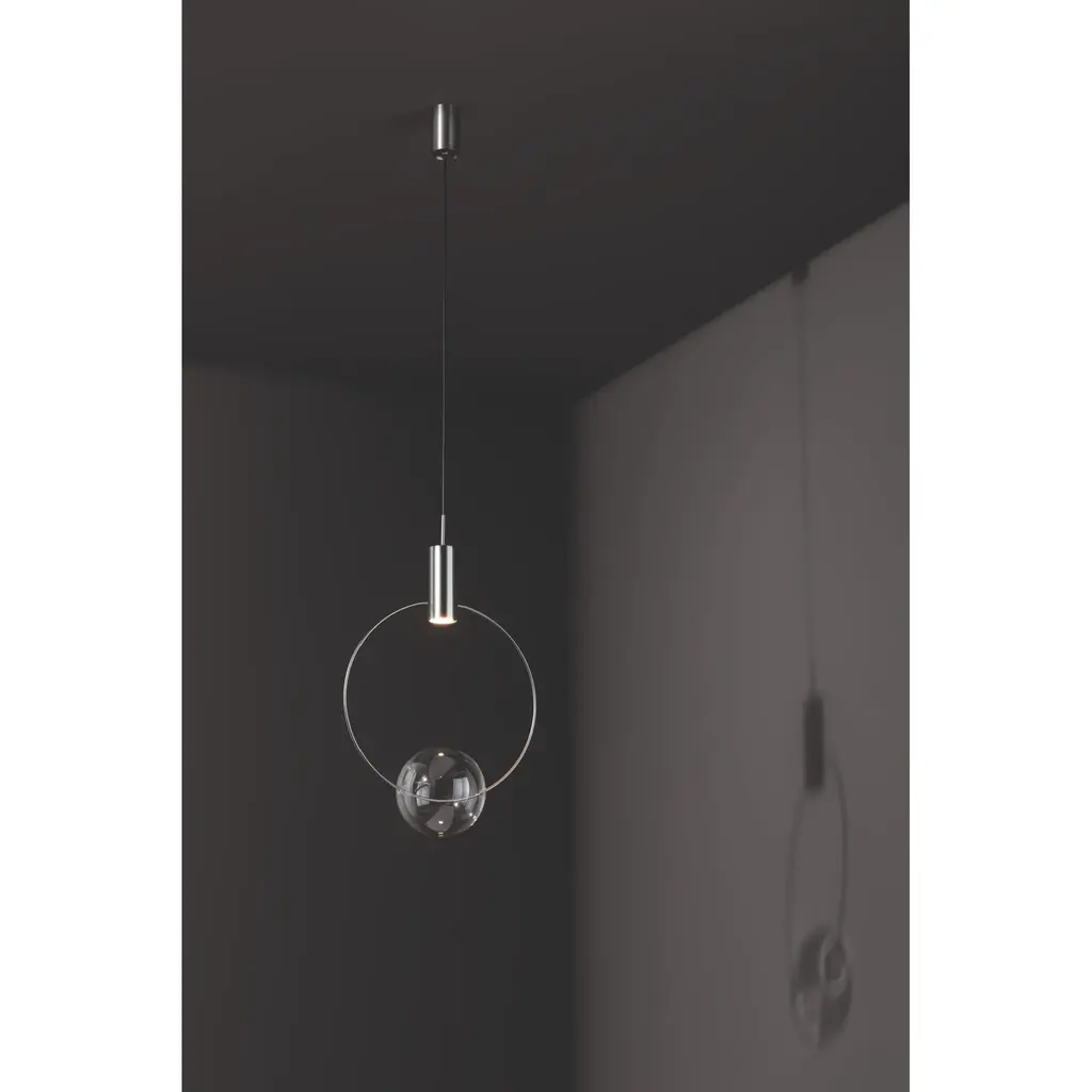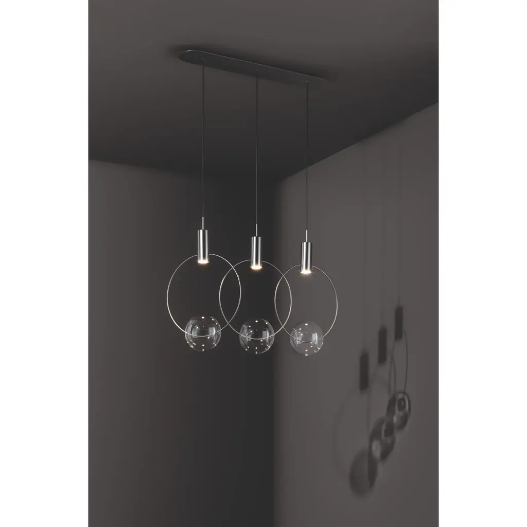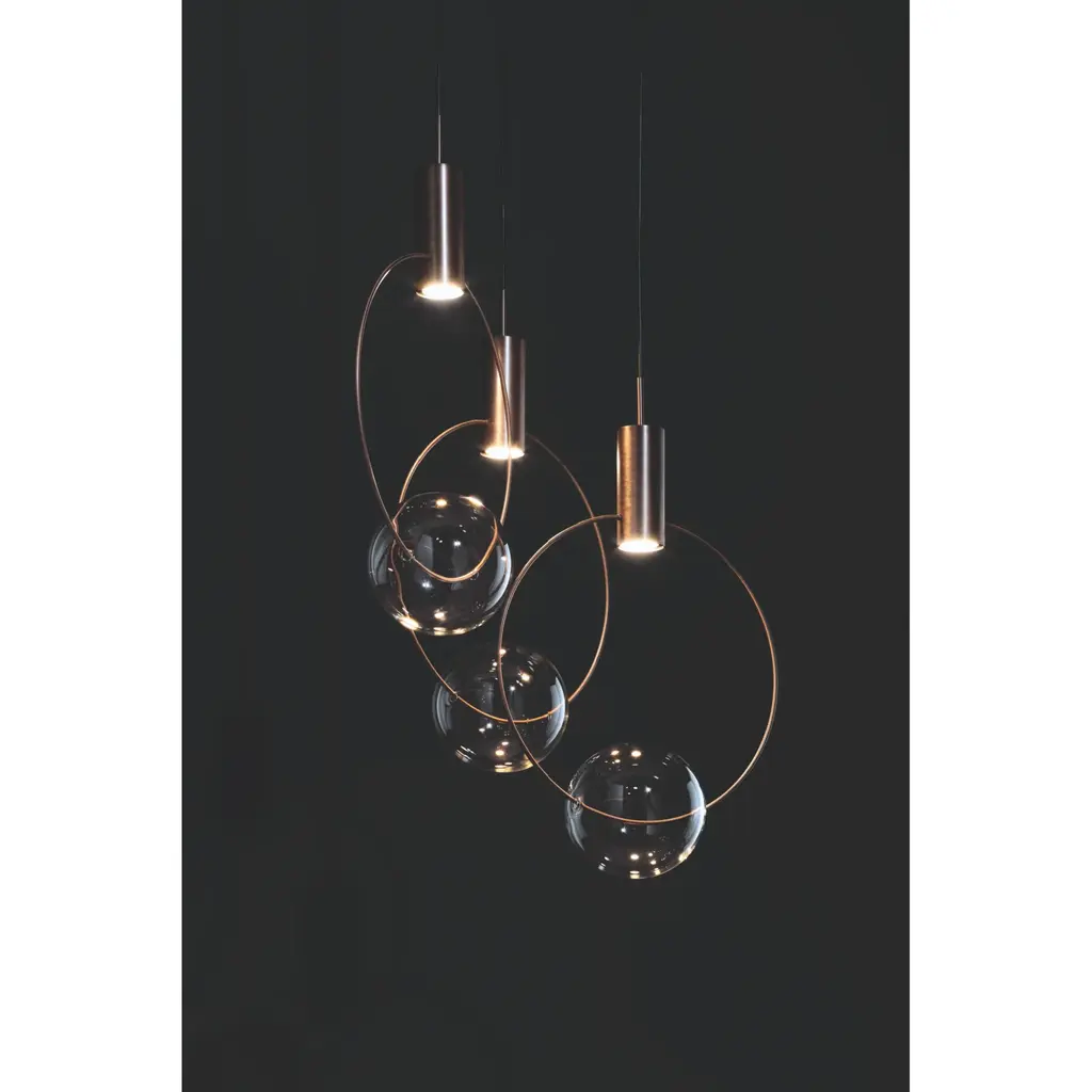 Keshi is a jewel that illuminates discreetly, creating an intimate and sophisticated atmosphere. A blown glass sphere, similar to a valuable pearl, hangs sinuously from its stem, creating an image of pure elegance. The essential and contemporary lines that define its silhouette capture attention and allow Keshi to fit into any environment, from residential to contract. Keshi is available with a brushed nickel and copper bronze frame, two finishes that combine with the delicate brightness diffused by the transparent glass sphere. Further customization is possible with the 3-light version, while casual features a round rosette and the lights can be mounted at variable heights and linear features a rectangular rosette with rounded corners and the lights fixed at the same height and distance.