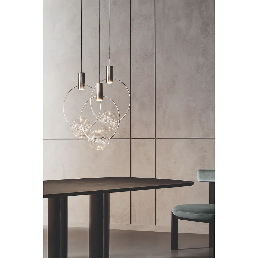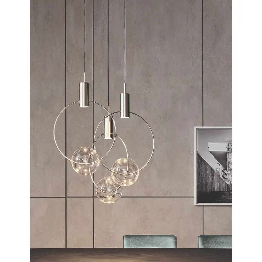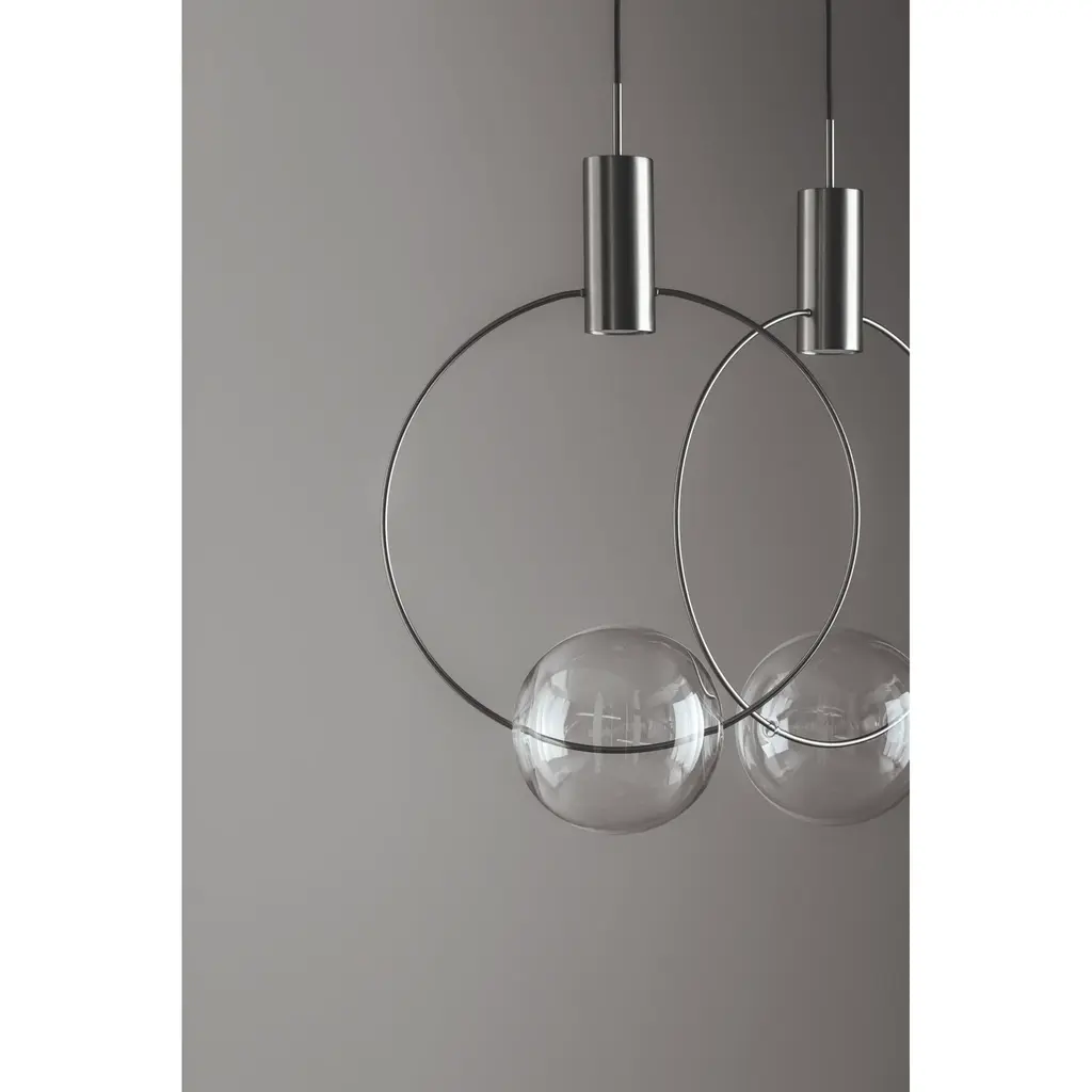 Keshi is a jewel that illuminates discreetly, creating an intimate and sophisticated atmosphere. A blown glass sphere, similar to a valuable pearl, hangs sinuously from its stem, creating an image of pure elegance. The essential and contemporary lines that define its silhouette capture attention and allow Keshi to fit into any environment, from residential to contract. Keshi is available with a brushed nickel and copper bronze frame, two finishes that combine with the delicate brightness diffused by the transparent glass sphere. Further customization is possible with the 3-light version, while casual features a round rosette and the lights can be mounted at variable heights and linear features a rectangular rosette with rounded corners and the lights fixed at the same height and distance.