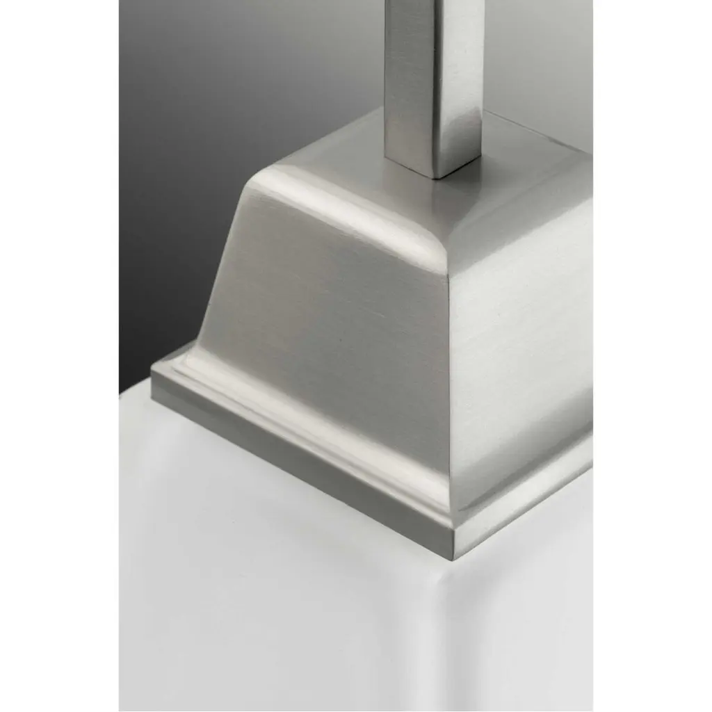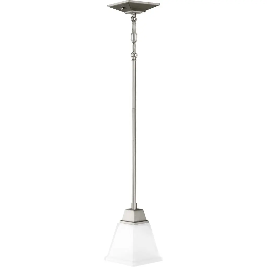 Distinctive chiseled features and clean lines are key features within the Clifton Heights collection. Inspired by an updated interpretation of Craftsman styling, careful attention to the details delivers a dramatic accent. A Brushed Nickel finish complements elegant etched square glass shades. The Clifton Heights collection enhances a variety of home styles including Farmhouse, Craftsman and Transitional decor. One-Light Mini-Pendant.