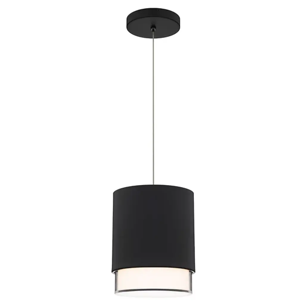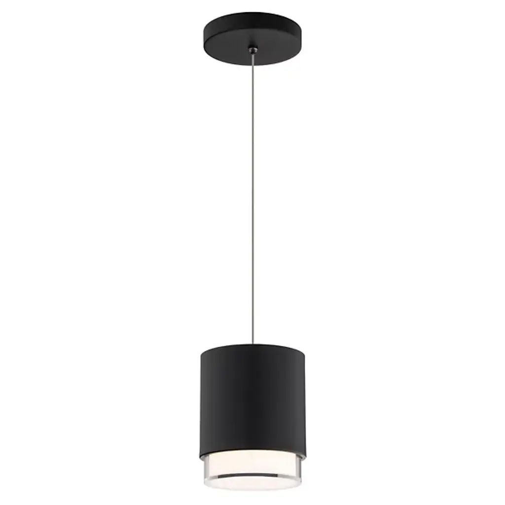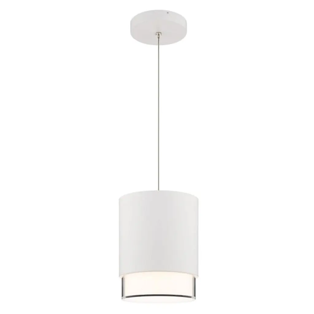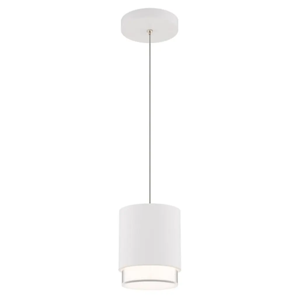 The Cloak LED Mini Pendant from dweLED uses a double-cylinder composition where an opaque aluminum outer shell wraps around an inner acrylic core. The outer layer extends past the inner shade, creating a directional quality that channels light strictly downward. This layered construction gives the fixture a sculptural depth despite its compact scale. The nested cylinders appear as distinct yet connected forms, with the aluminum exterior serving as both a structural element and a visual filter that shapes how illumination escapes from the translucent core beneath.