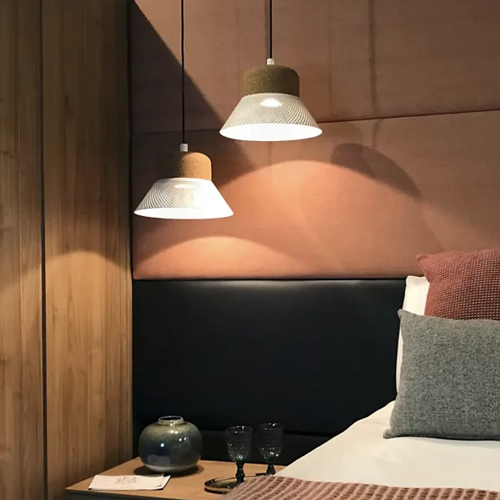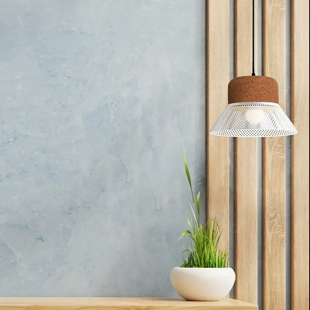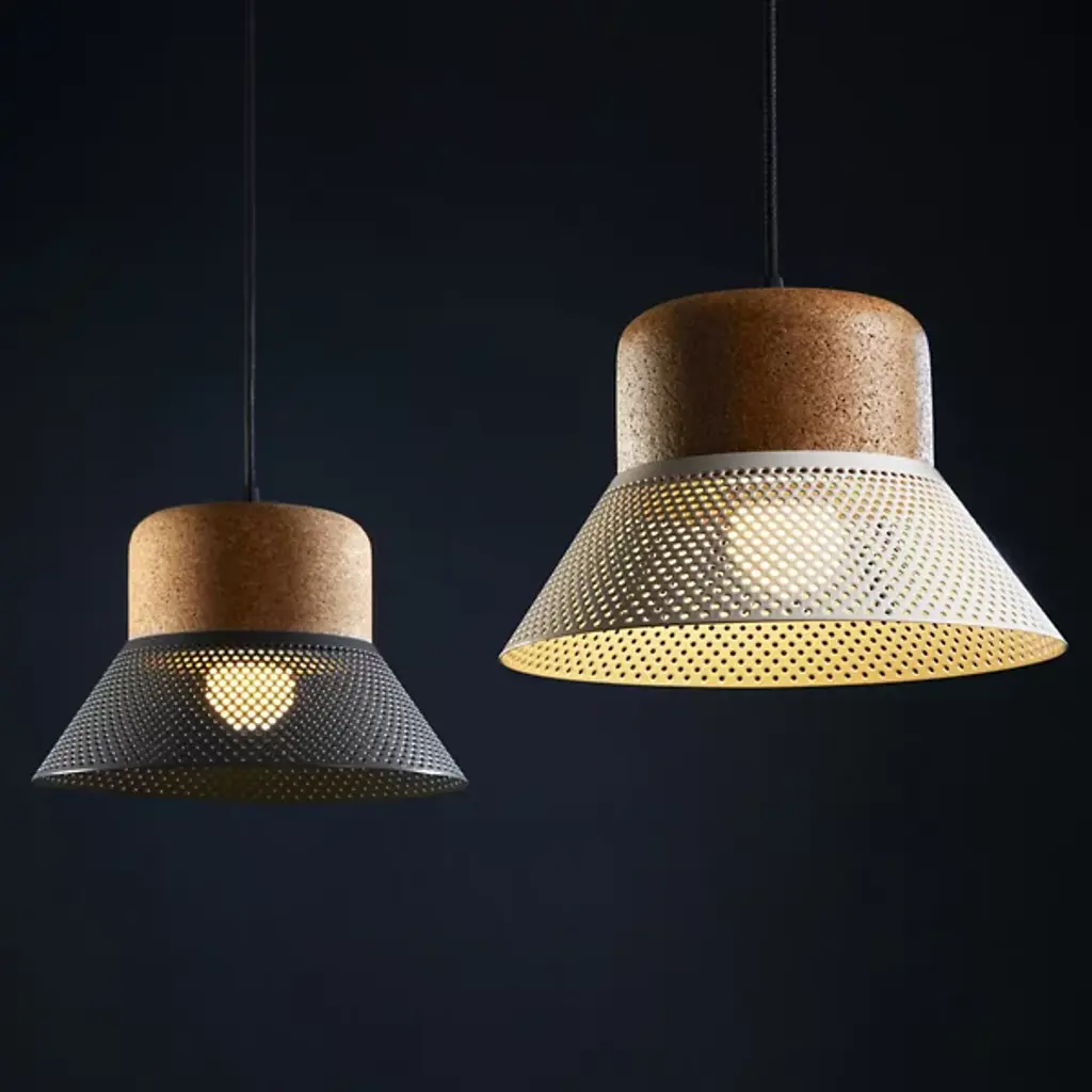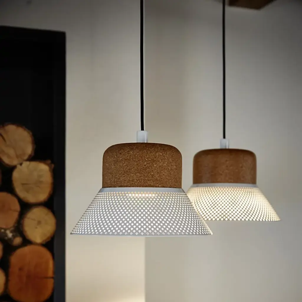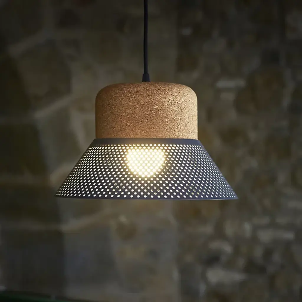 The Cloche LED Pendant from El Torrent is designed by Joan Jenebat. Your pendant takes on a hat-like formation for a sartorial vibe. It is crowned with cork, which accentuates its natural aesthetic. The pendant’s metal sheet shade boasts a plethora of circular puncture markings that allow the light from an integrated LED to splay throughout your environment, creating a mesmerizing display of light and shadow. Easily adjust Cloche’s brightness level with a separately sold ELV dimmer.