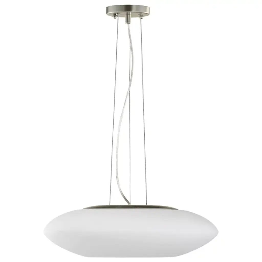 Add some real atmosphere to your modern lighting scheme with the Quorum Cloud Pendant No. 808. It features a soft, thick disc of Satin Opal glass hovering overhead within a clean, Satin Nickel-finished suspension. This shade provides warm, even diffusion of the light shed by the bulbs within.