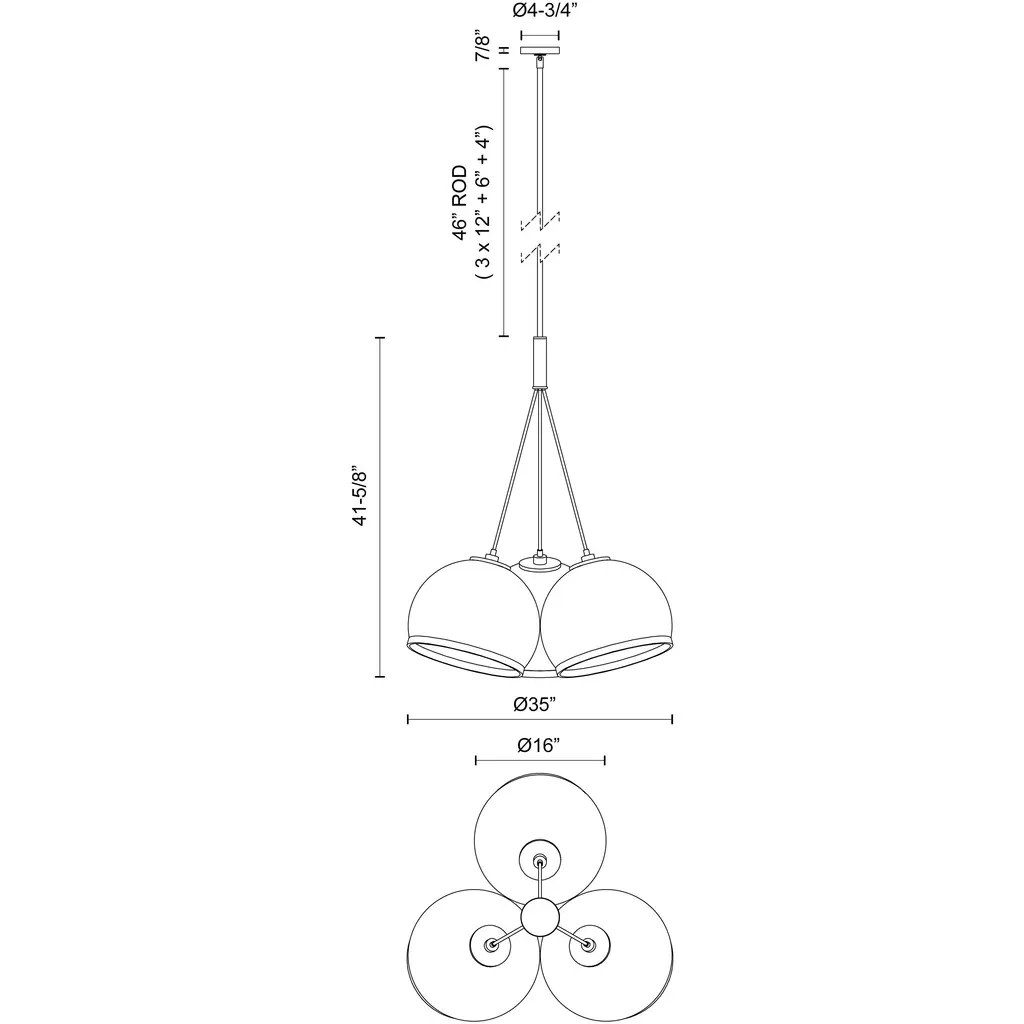 Coast 3 Light 35 Inch Aged Nickel Pendant Ceiling Light