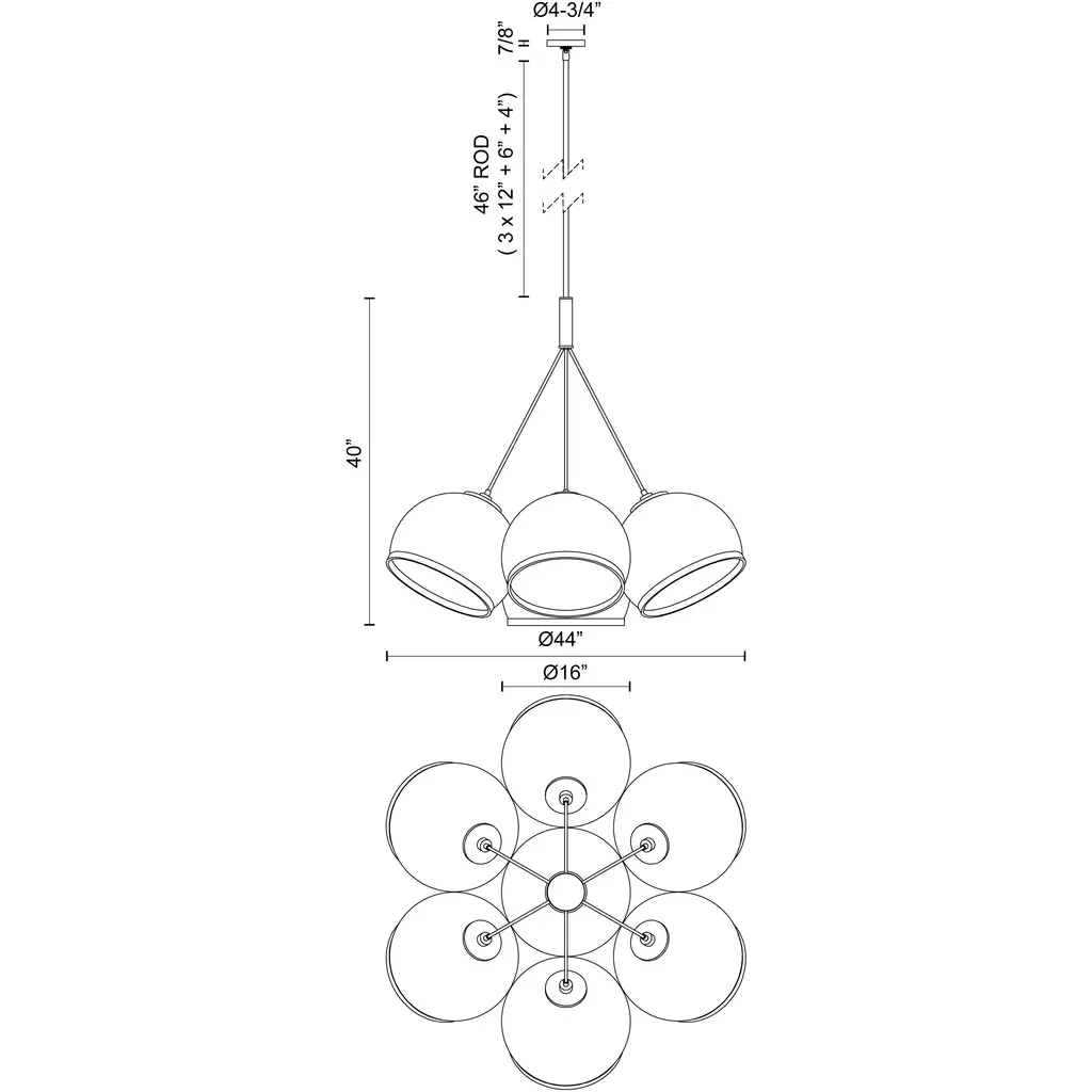 Coast 7 Light 43.9 Inch Vintage Brass Down Pendant Ceiling Light