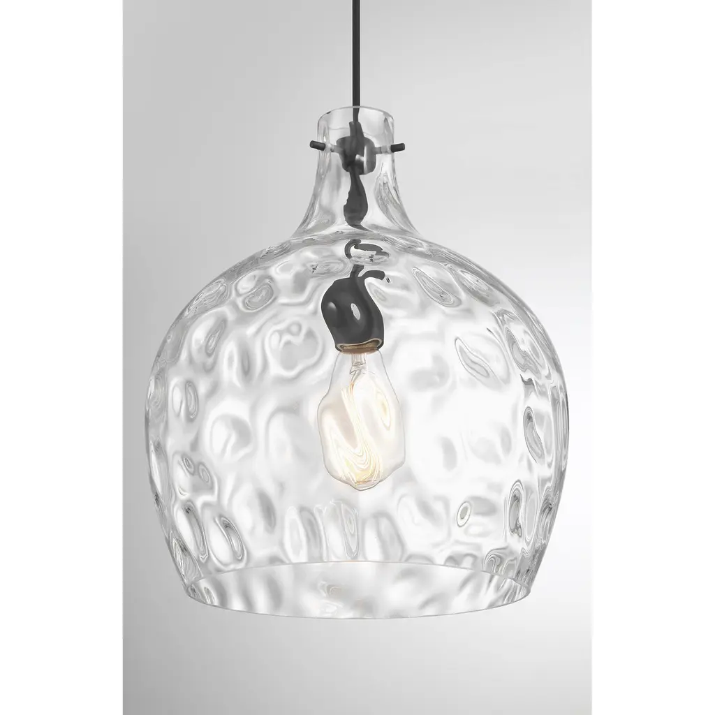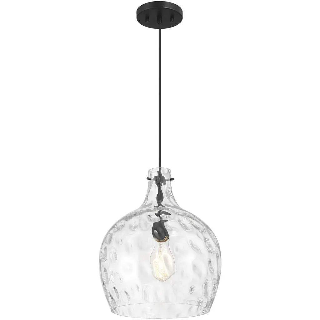 Amplify the look of any space with this beautiful 1-light pendant It features a shade of highly textured hammered glass that takes center stage, held on a sleek black hanging cord and accentuated by hardware in a Matte Black finish. This pendant is 12.75" in width and has an adjustable height ranging from 15" to 135". Uses 1 standard size bulb of up to 60 watts. Bulb not included.