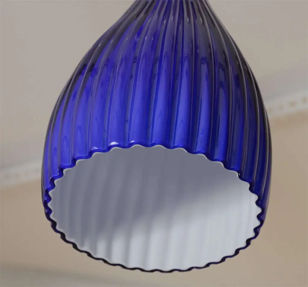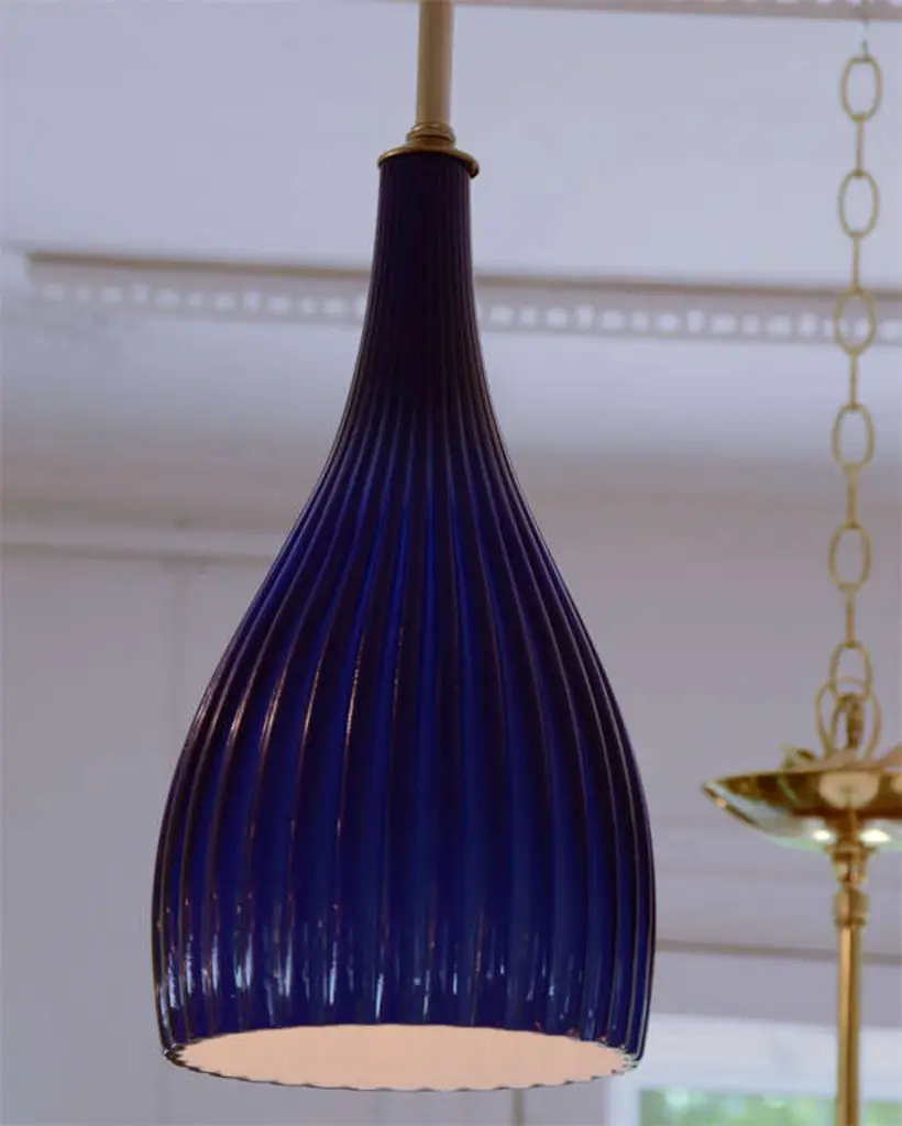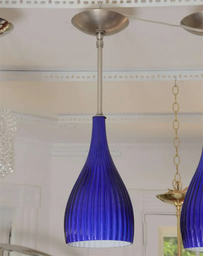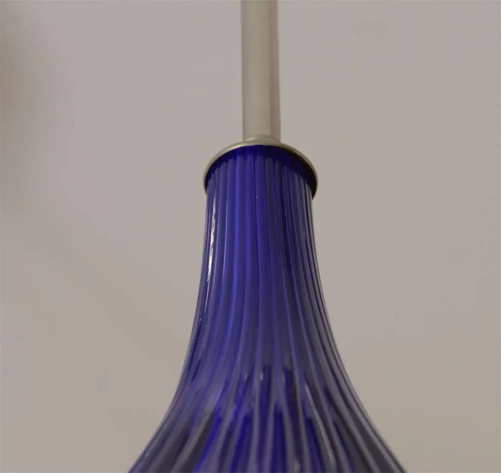 Cobalt Blue Ribbed Murano Pendant With Nickel Hardware