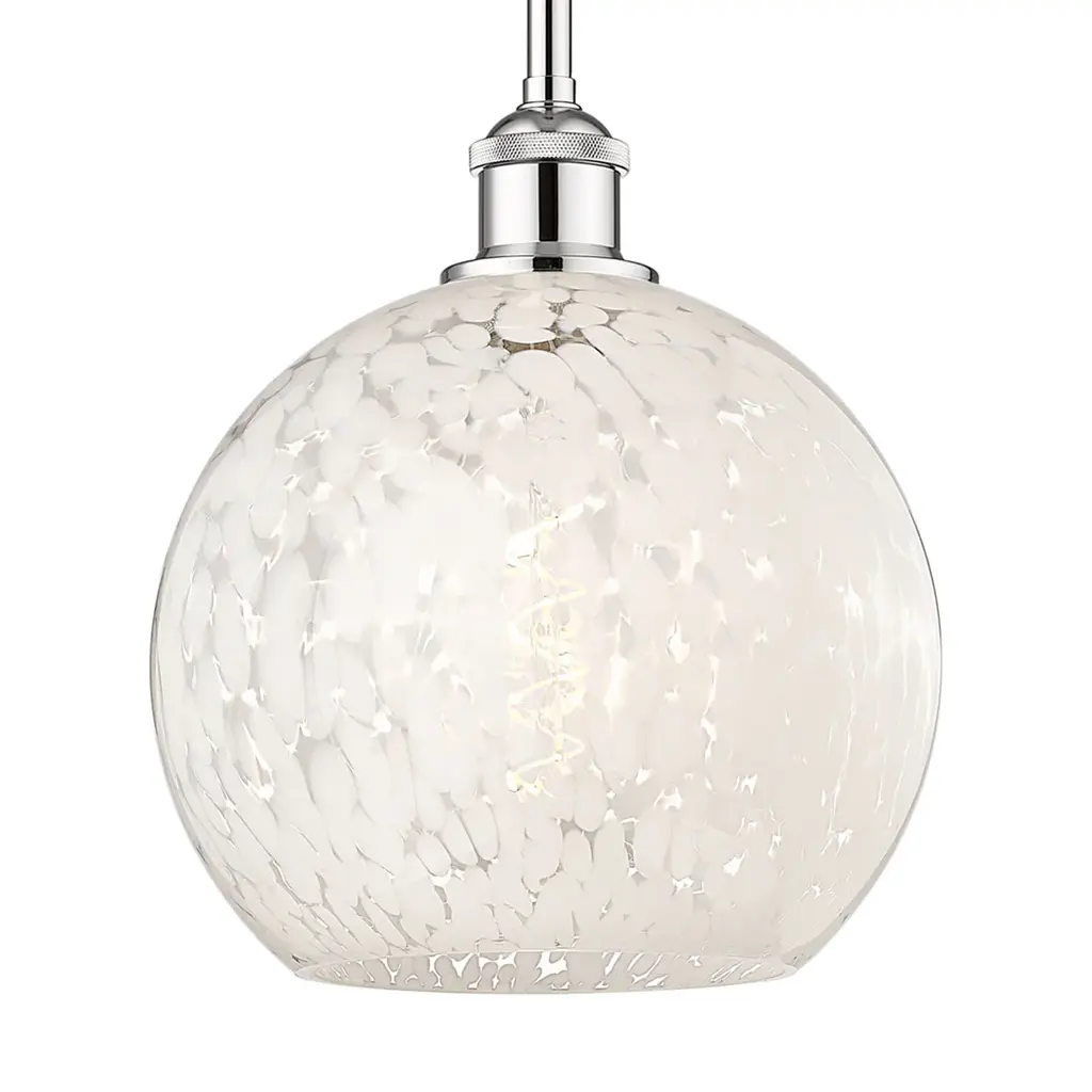 The globe-shaped Coco is a blown glass with a neutral décor and classic shape that blends gracefully into all environments. Our Cocoon glass is a frosted glass with interesting threads of opaque white swirling throughout. This décor is full of textured and creates a point of interest to any room. When lit this glass features a dimensional effect from the whites lines that are interlaced at various levels. The smooth satin finish on the clear outer layer is a result of an extensive etching process, with the texture of the subtle brushing. This blown glass is handcrafted by a skilled artisan, utilizing century-old techniques passed down from generation to generation. Each piece of this décor has its own artistic nature that can be individually appreciated The stem pendant fixture is equipped with an adjustable telescoping section, 4 connectable stem sections (3", 6", 12", and 18") and low Profile flat monopoint canopy. These stylish and functional luminaries are offered in a beautiful Black finish.