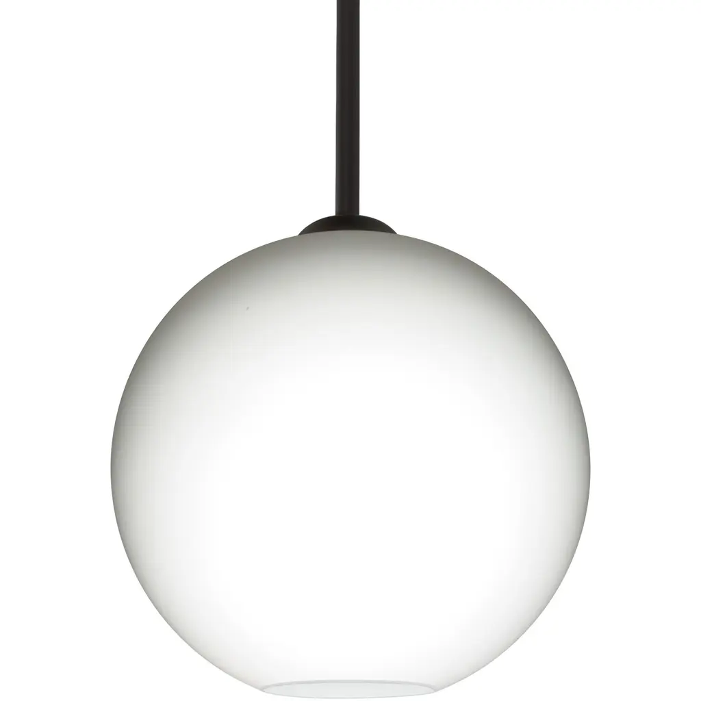 The globe-shaped Coco is a blown glass with a neutral décor and classic shape that blends gracefully into all environments. Our Cocoon glass is a frosted glass with interesting threads of opaque white swirling throughout. This décor is full of textured and creates a point of interest to any room. When lit this glass features a dimensional effect from the whites lines that are interlaced at various levels. The smooth satin finish on the clear outer layer is a result of an extensive etching process, with the texture of the subtle brushing. This blown glass is handcrafted by a skilled artisan, utilizing century-old techniques passed down from generation to generation. Each piece of this décor has its own artistic nature that can be individually appreciated The stem pendant fixture is equipped with an adjustable telescoping section, 4 connectable stem sections (3", 6", 12", and 18") and low Profile flat monopoint canopy. These stylish and functional luminaries are offered in a beautiful Black finish.