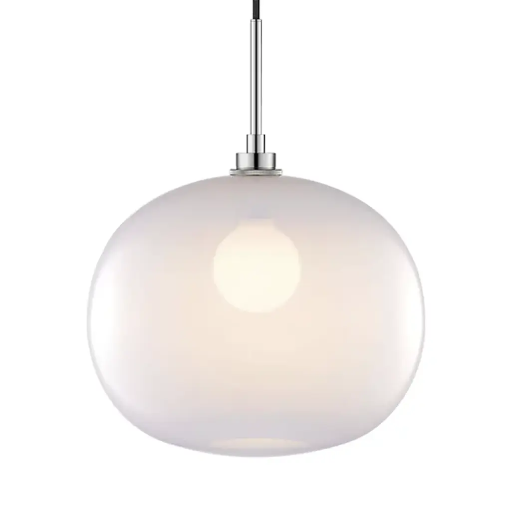 The globe-shaped Coco is a blown glass with a neutral décor and classic shape that blends gracefully into all environments. Our Opal glass is a soft white cased glass that can suit any classic or modern decor. Opal has a very tranquil glow that is pleasing in appearance. The smooth satin finish on the clear outer layer is a result of an extensive etching process. This blown glass is handcrafted by a skilled artisan, utilizing century-old techniques passed down from generation to generation. The cord pendant fixture is equipped with a 10' SVT cordset and a low profile flat monopoint canopy. These stylish and functional luminaries are offered in a beautiful Black finish.