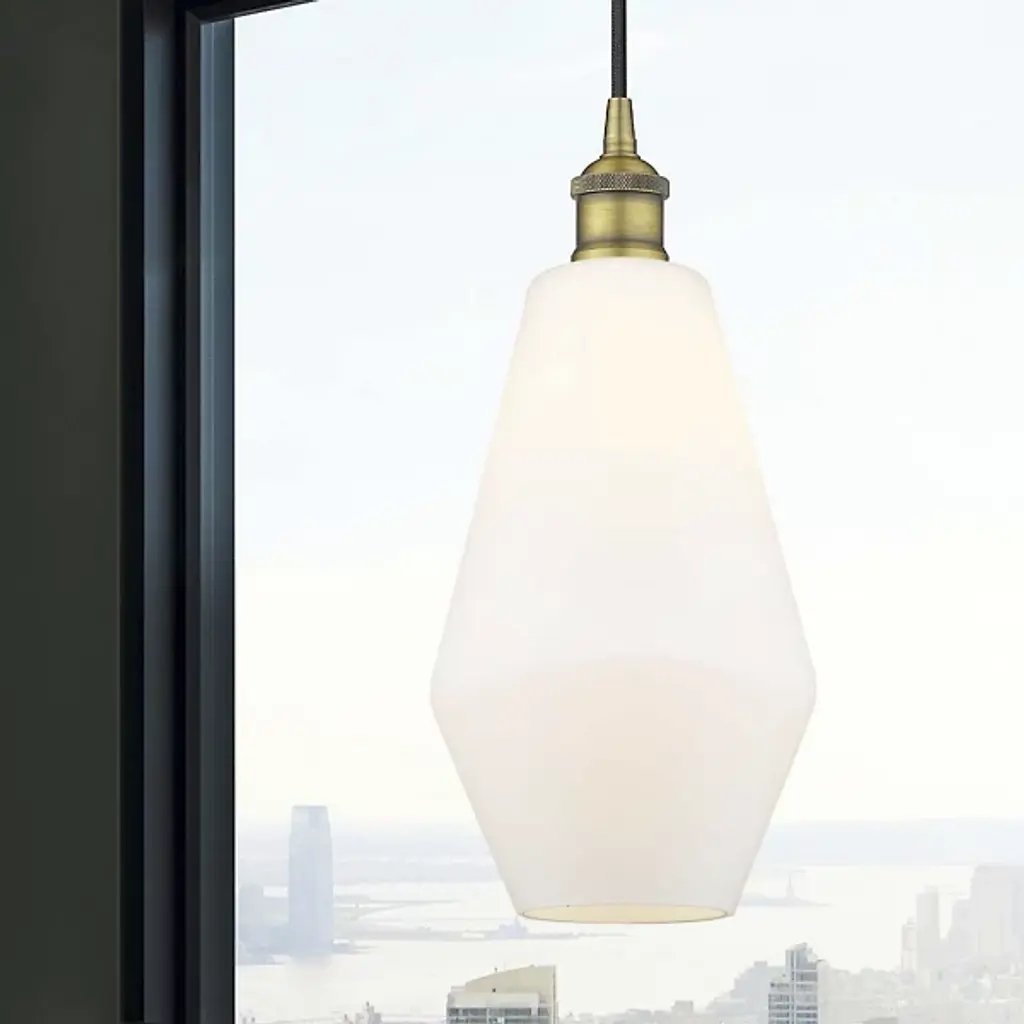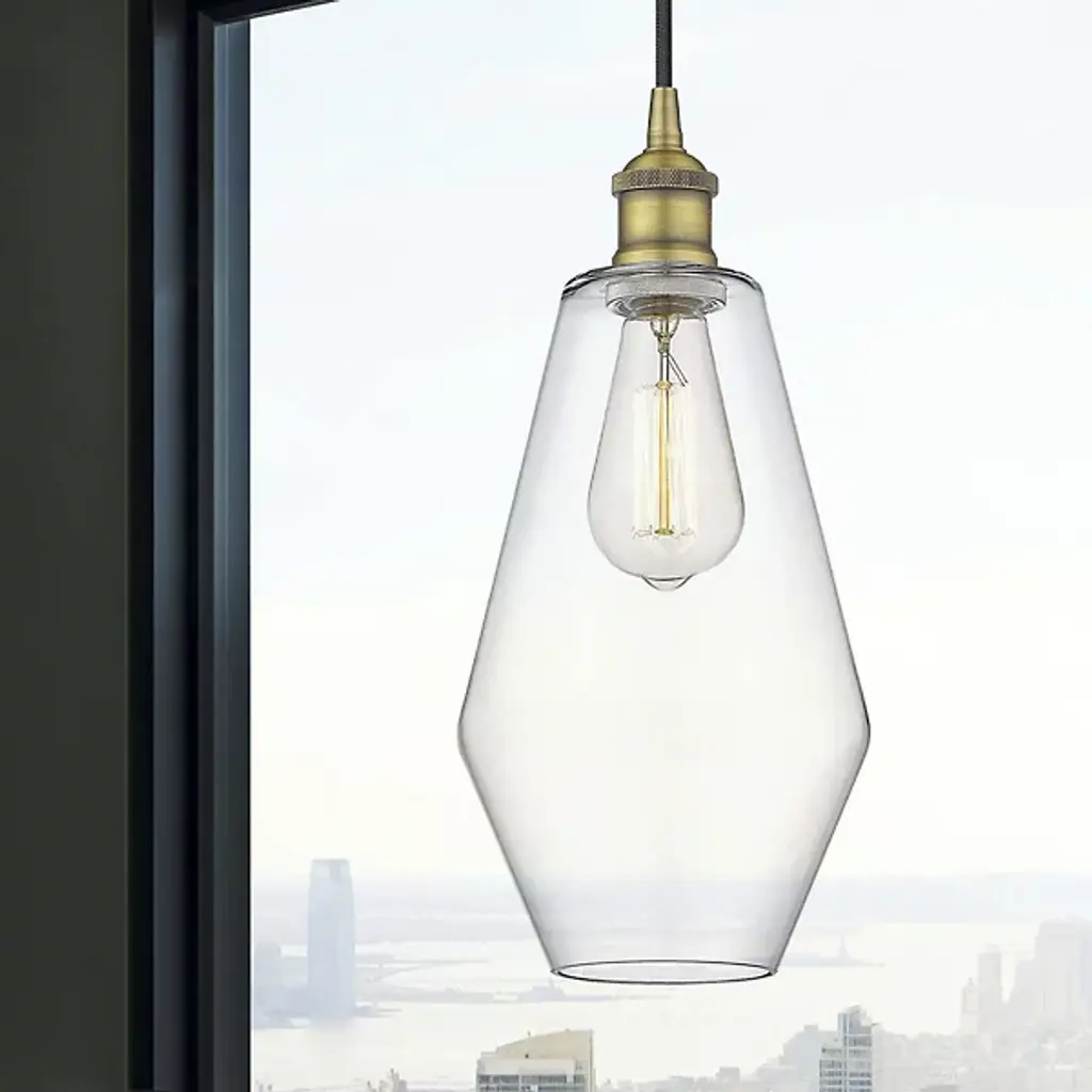 An elegantly angular design that produces a generous amount of ambient light. The Coco Long Mini Pendant by Alder & Ore is an eye-catching piece with an elongated, diamond-shaped glass shade. When illuminated, the glass enables an even wash of light all around as well as bright downlight. That makes this pendant light a great option for both dressing up and providing the light needed for tasks in a modern kitchen, dining area or bedroom.