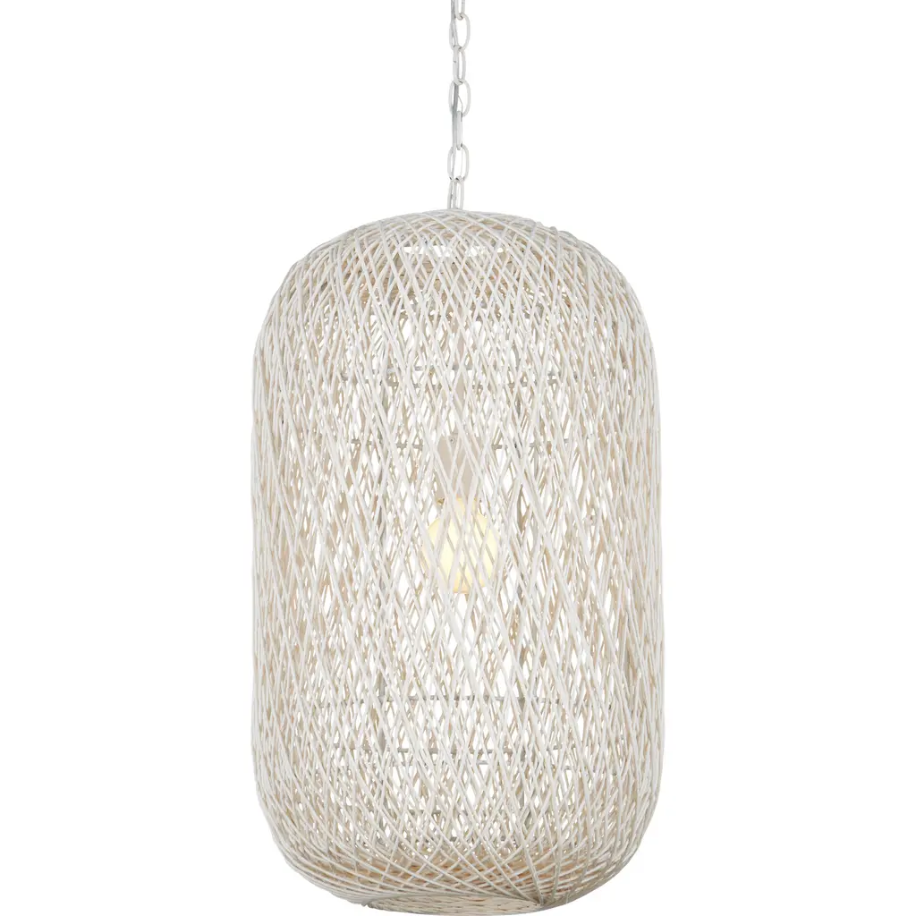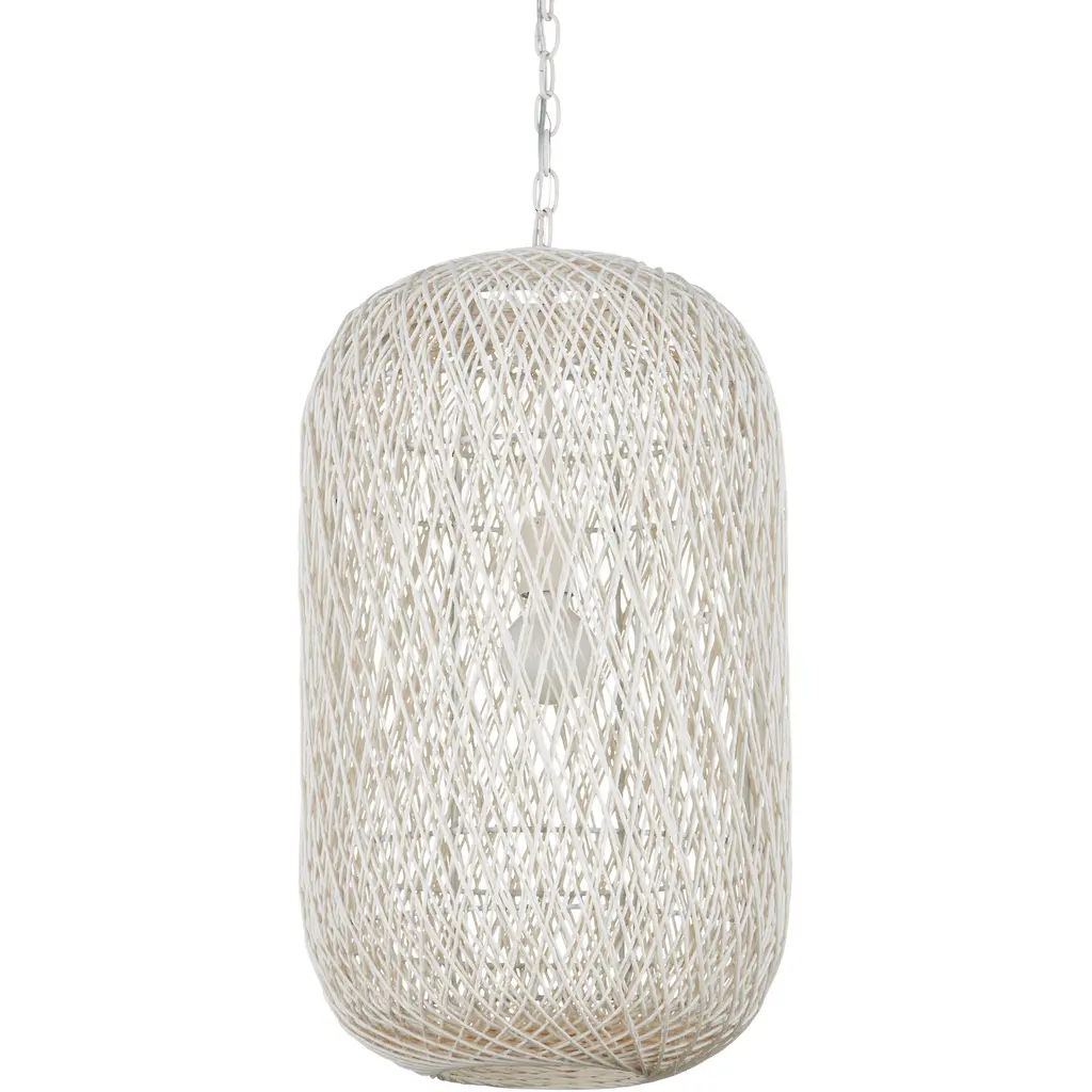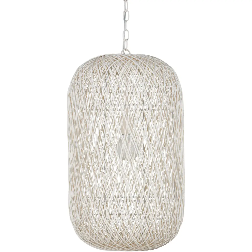 The Cocoon Medium Pendant was inspired by a butterfly in chrysalis, but it is meant for grander-scaled duties as a light fixture. The white pendant has a wrought iron frame covered in a vanilla finish that is beautifully wrapped in Kraft paper twine in a cream finish. The skill and patience required to create such an even flow of string makes this an artisanal piece. Adjustable from 36" to 106.5" with use of included chain/rod kit/cable. If your space calls for a longer drop, additional chain/rods/cable is available for purchase.