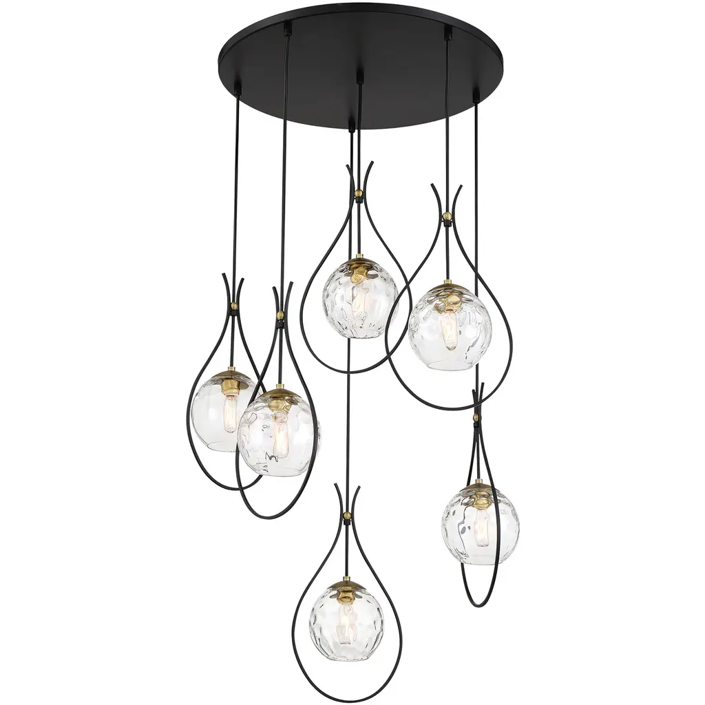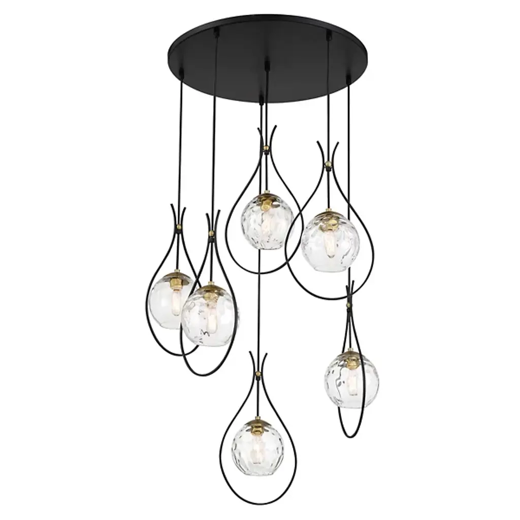 The Cody Multi-Light Pendant by Minka-Lavery exemplifies a refined transitional style, perfect for elevating any space in your home. Meticulously crafted from coal and soft brass, it uniquely combines durability and aesthetic appeal. This pendant features a sleek steel and glass shade, ensuring bright and clear illumination. This versatile fixture seamlessly merges traditional and contemporary elements, adding elegance and functionality. It is ideal for dining areas, kitchens, or living rooms. Enhance your home's decor with this sophisticated lighting solution.