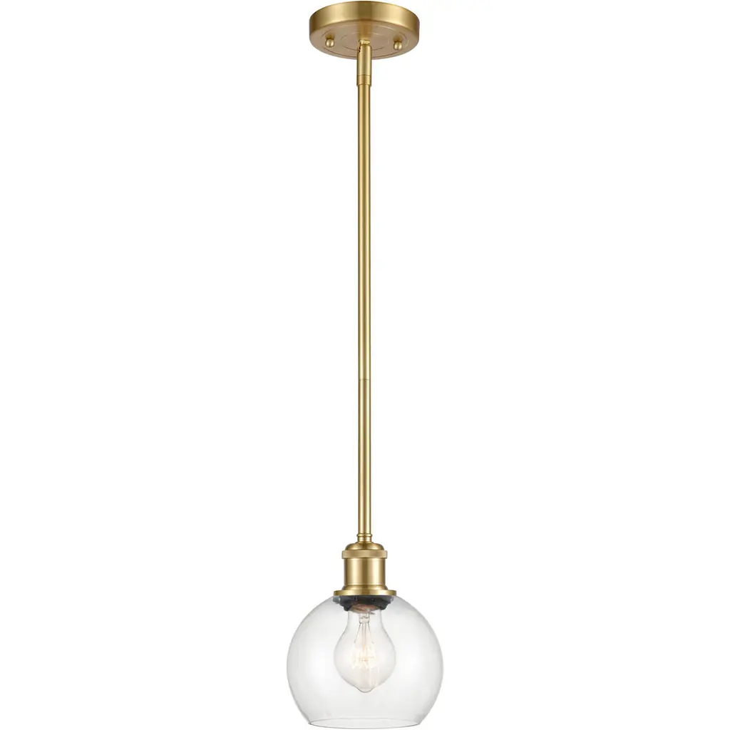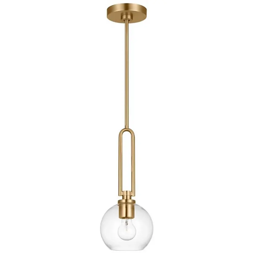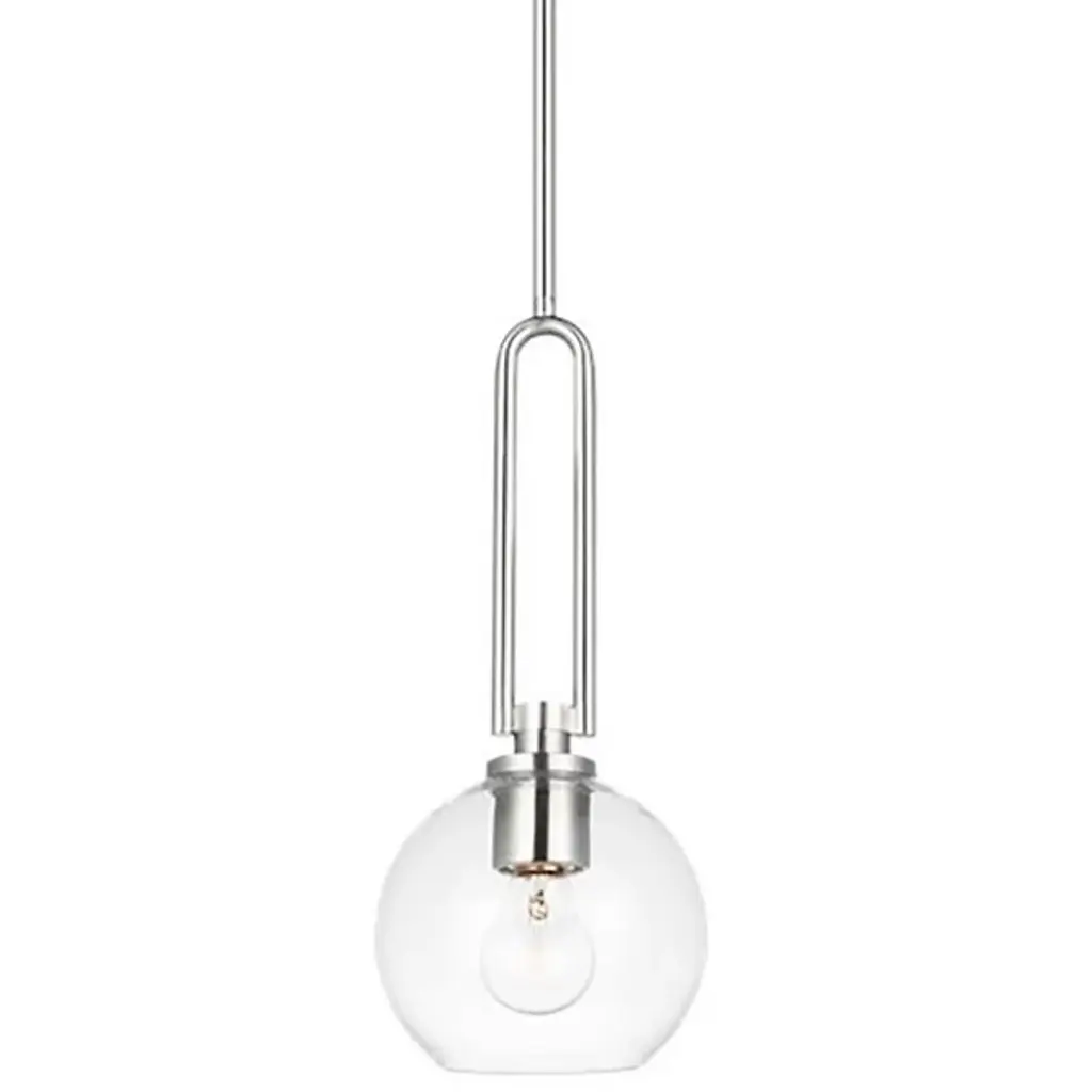 Capture the old with the new as stunning clear glass globe shades create a gorgeous glow. The Codyn Pendant from Visual Comfort Studio, formerly known as Sea Gull Lighting, features a five-light single-tier chandelier in a contemporary take on a classic mid-century design. Clear glass shades with open-ended spheres accent the elongated keyhole strap detail for a clean look. This minimalist fixture relies on subtle details to create visual interest.