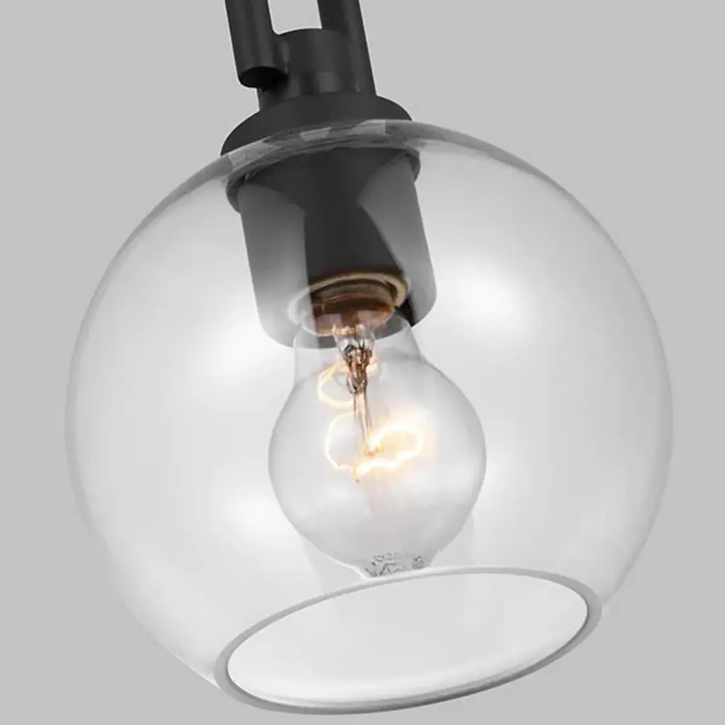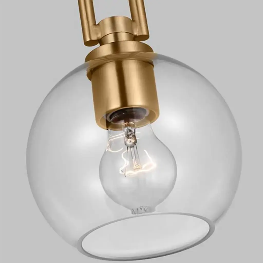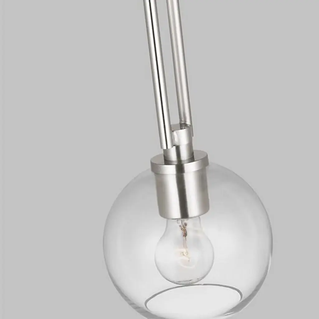 Capture the old with the new as stunning clear glass globe shades create a gorgeous glow. The Codyn Pendant from Visual Comfort Studio, formerly known as Sea Gull Lighting, features a five-light single-tier chandelier in a contemporary take on a classic mid-century design. Clear glass shades with open-ended spheres accent the elongated keyhole strap detail for a clean look. This minimalist fixture relies on subtle details to create visual interest.