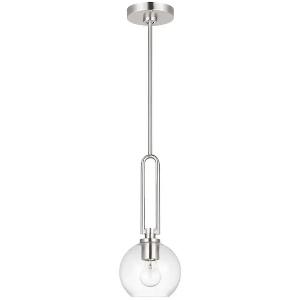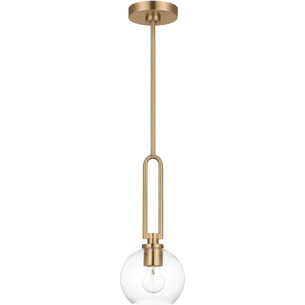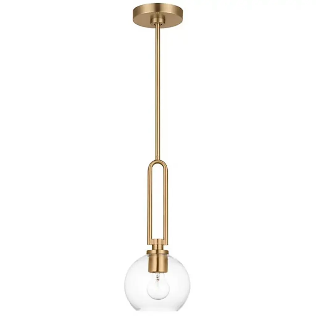 Capture the old with the new as stunning clear glass globe shades create a gorgeous glow. The Codyn Pendant from Visual Comfort Studio, formerly known as Sea Gull Lighting, features a five-light single-tier chandelier in a contemporary take on a classic mid-century design. Clear glass shades with open-ended spheres accent the elongated keyhole strap detail for a clean look. This minimalist fixture relies on subtle details to create visual interest.