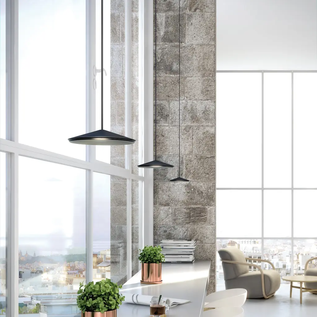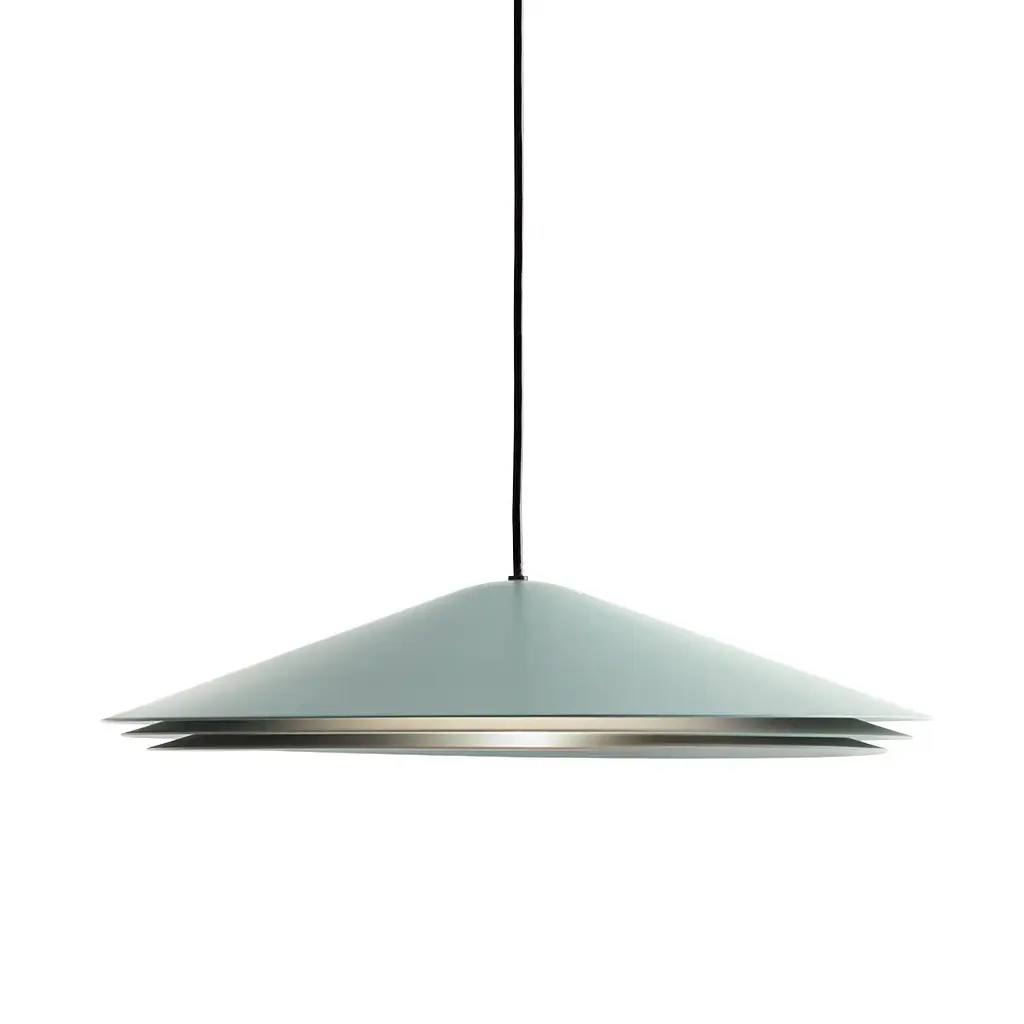 Metallic pendant LED lamp available in white, mint green, black or terracotta finish. Features
