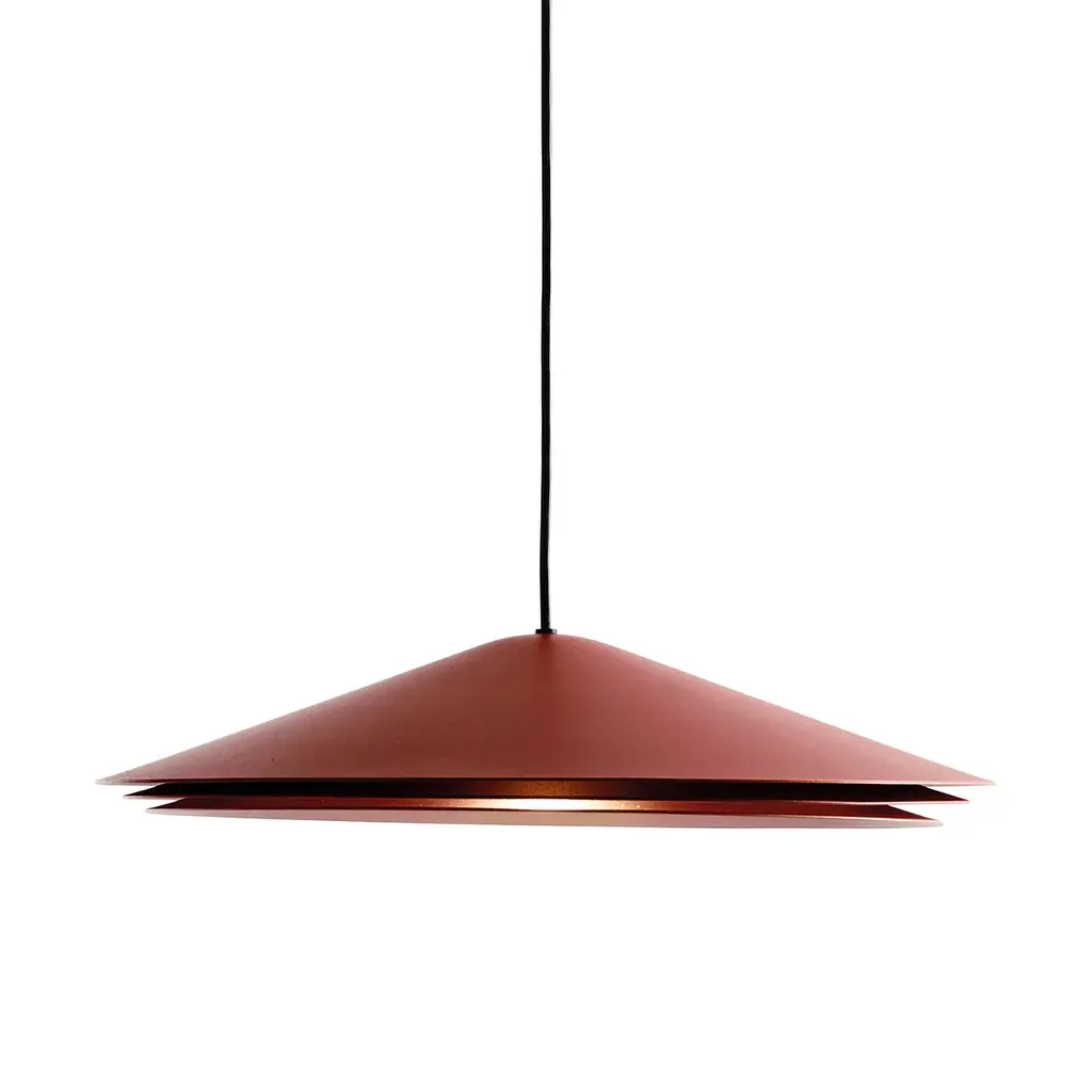 Metallic pendant LED lamp available in white, mint green, black or terracotta finish. Features
