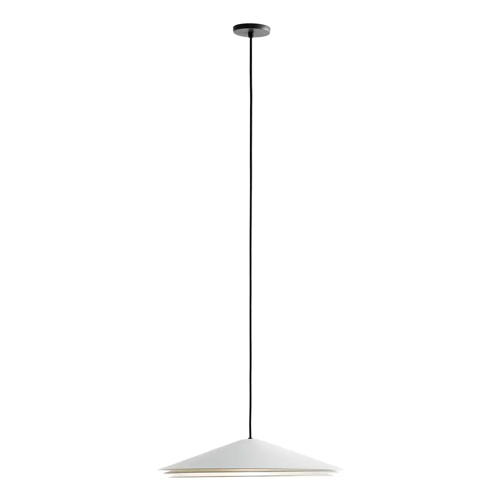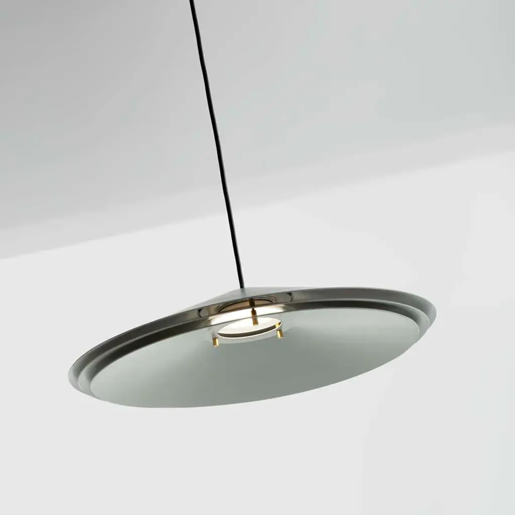 Metallic pendant LED lamp available in white, mint green, black or terracotta finish. Features