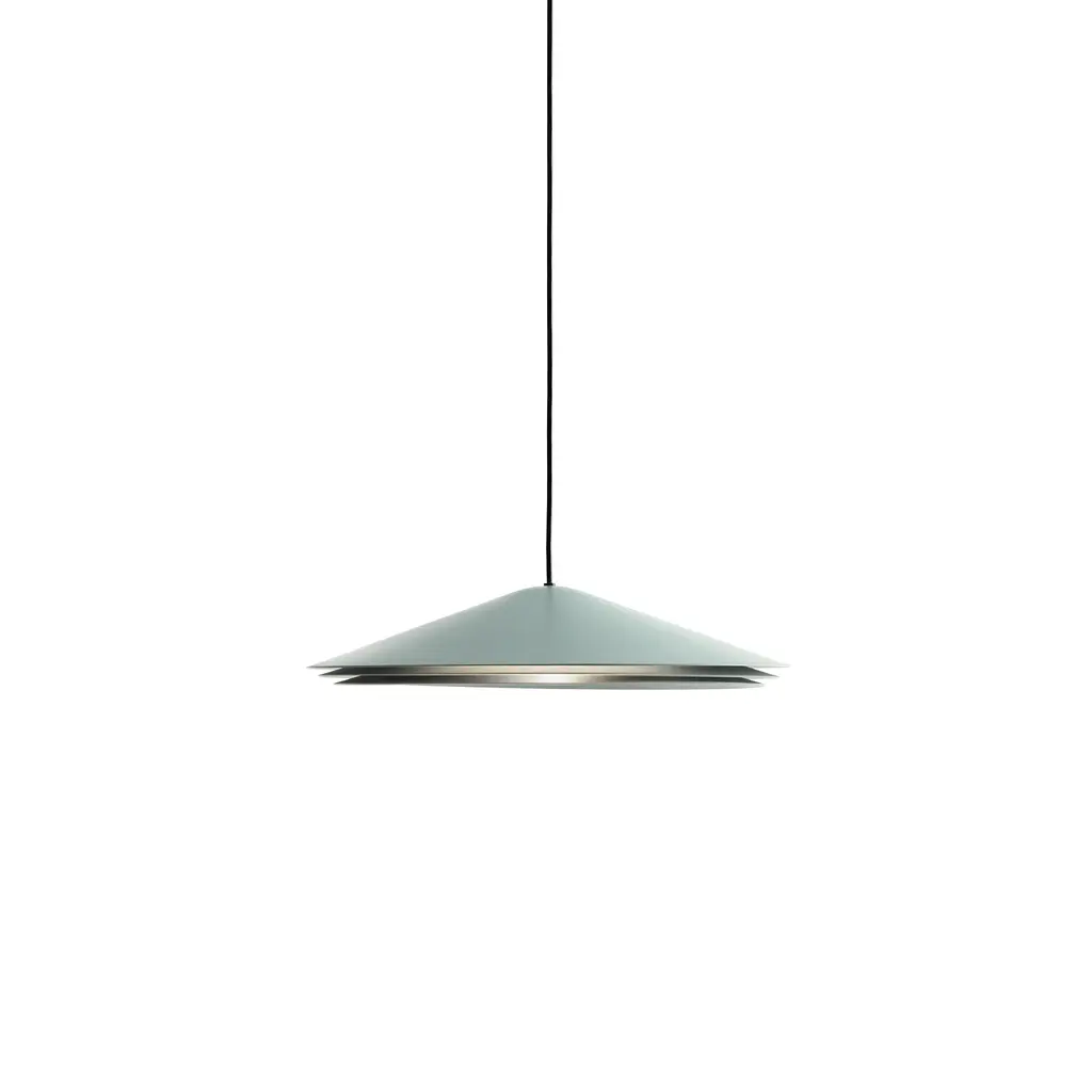 Metallic pendant LED lamp available in white, mint green, black or terracotta finish. Features