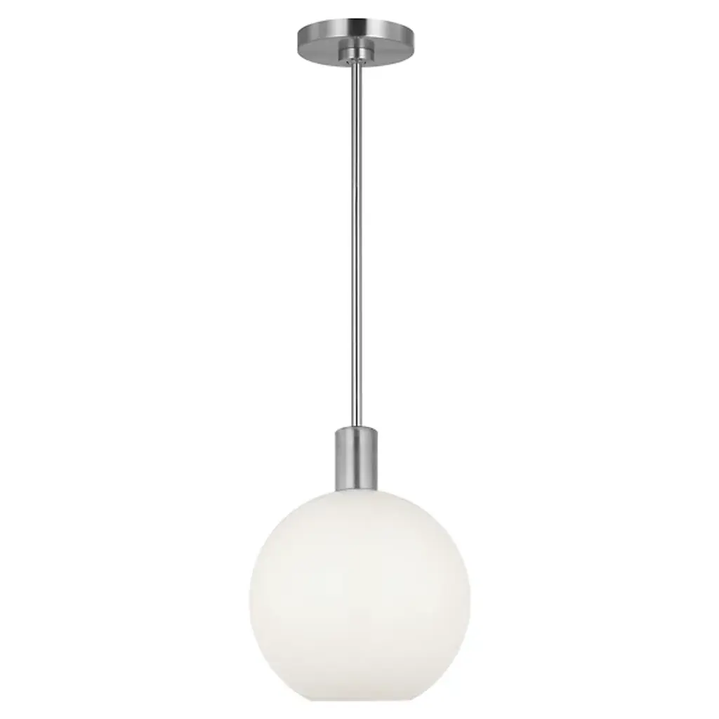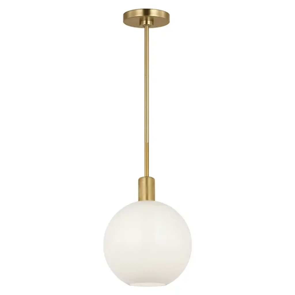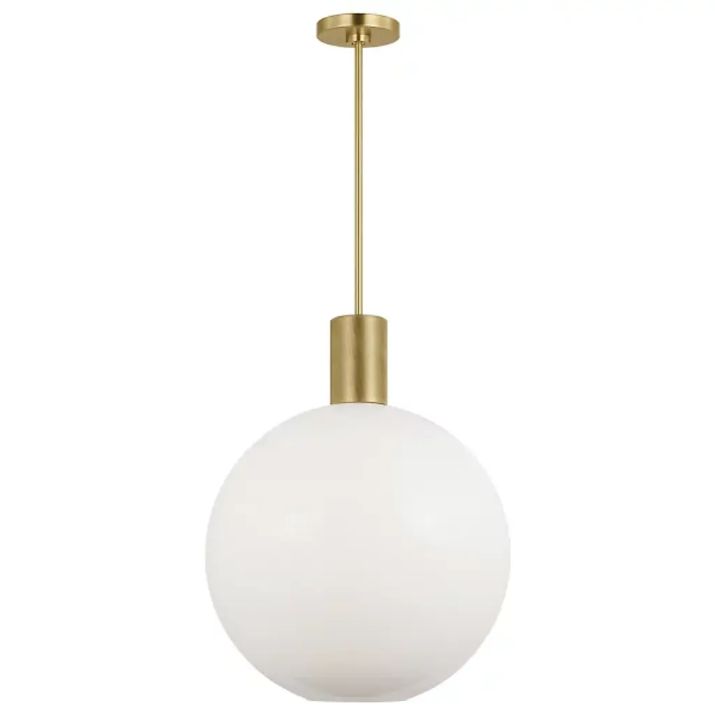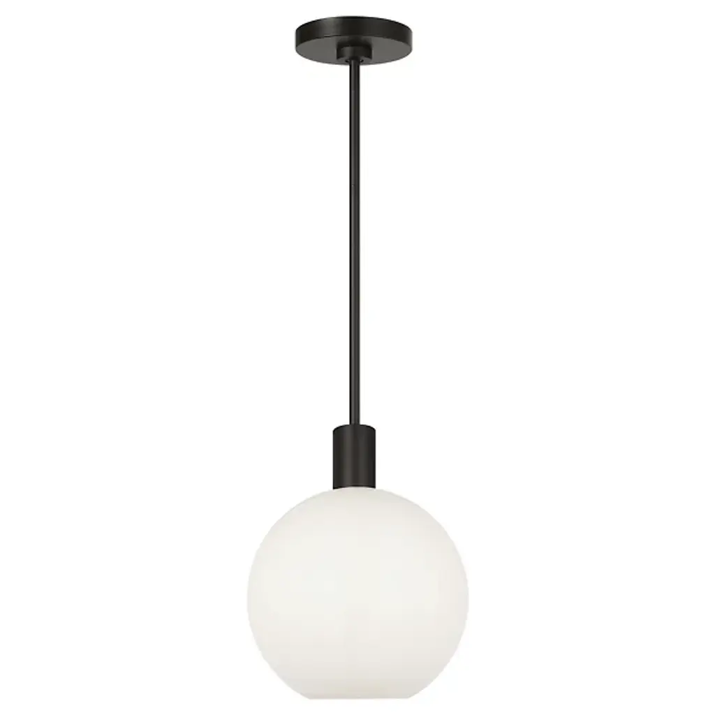 Contemporary clarity with a vintage edge. The Colewood Pendant from Visual Comfort Studio keeps things simple with a slim steel structure, descending from a circle canopy via a single stem. Designed by Drew & Jonathan Scott, it places strong LED light inside a globe-shaped glass shade that is great for tables or other gathering spaces. The translucent material cuts glare to the sides, while an open base leaves room for a vertical spotlight, casting a layered mix of light below.
