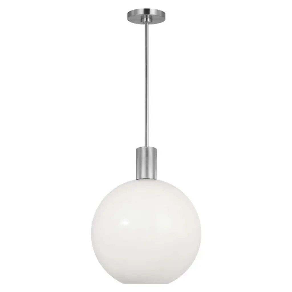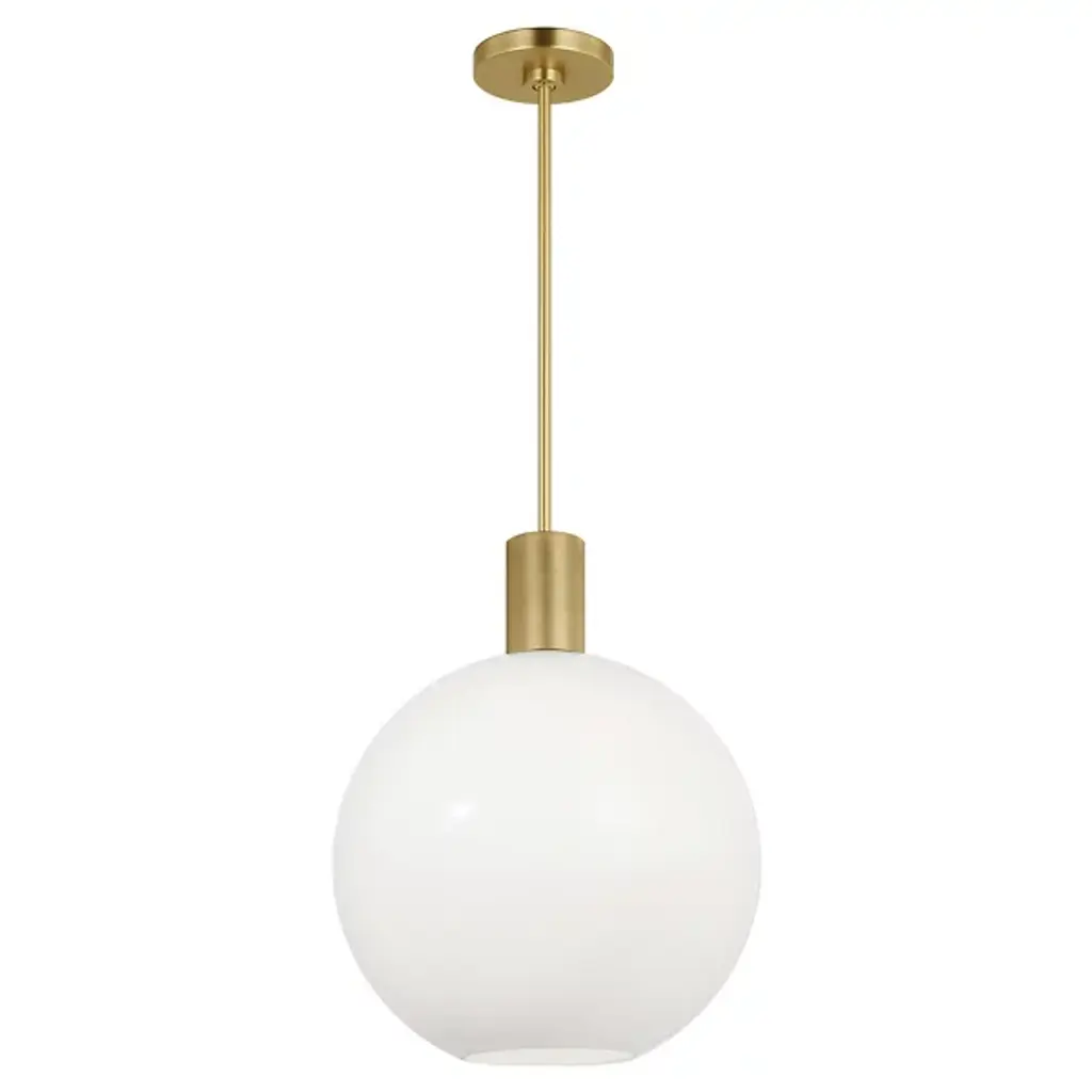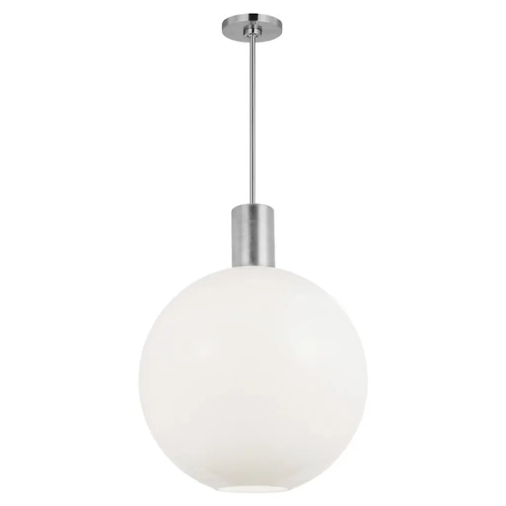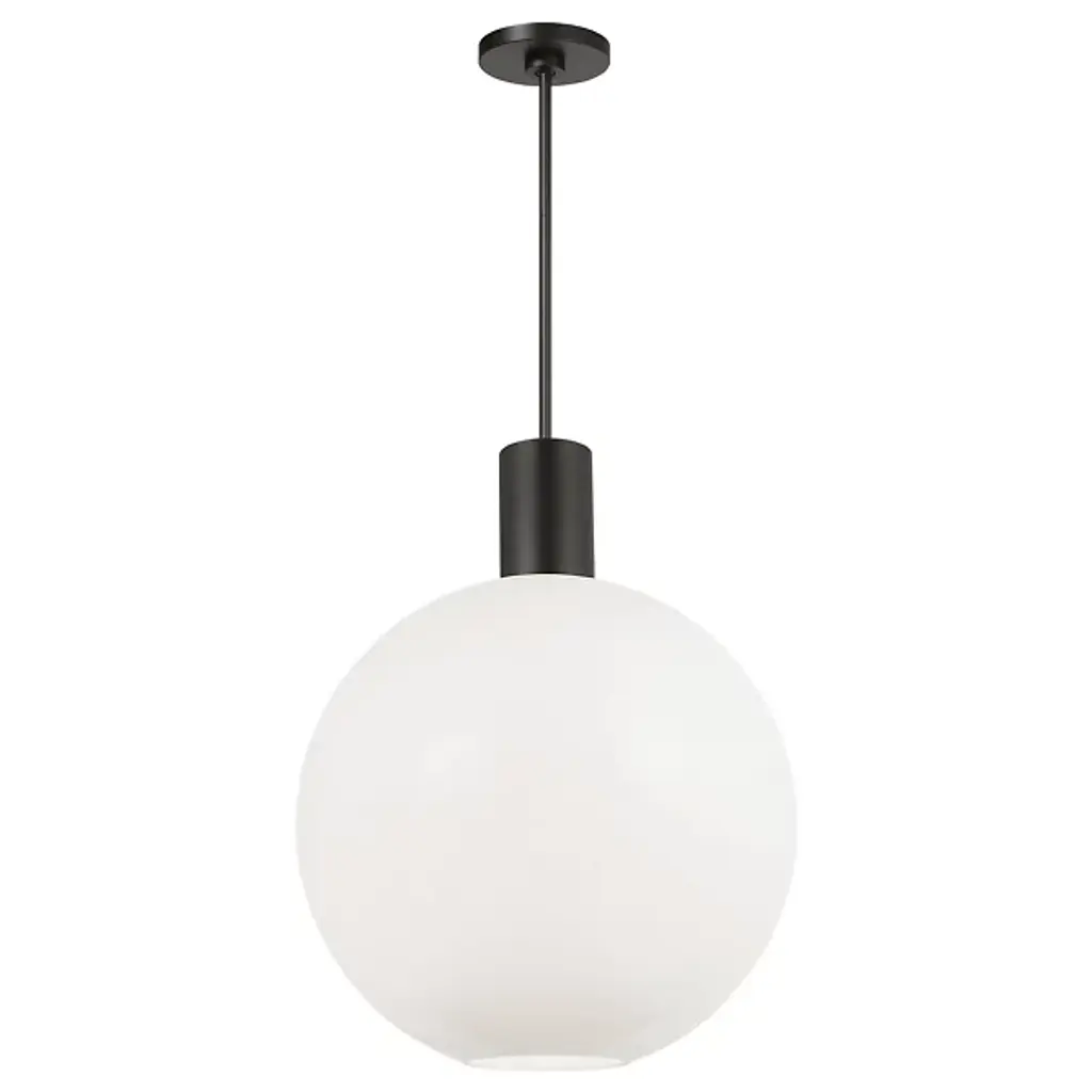 Contemporary clarity with a vintage edge. The Colewood Pendant from Visual Comfort Studio keeps things simple with a slim steel structure, descending from a circle canopy via a single stem. Designed by Drew & Jonathan Scott, it places strong LED light inside a globe-shaped glass shade that is great for tables or other gathering spaces. The translucent material cuts glare to the sides, while an open base leaves room for a vertical spotlight, casting a layered mix of light below.