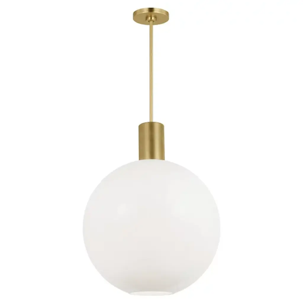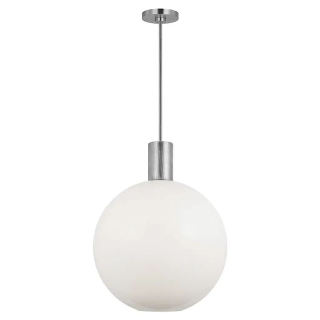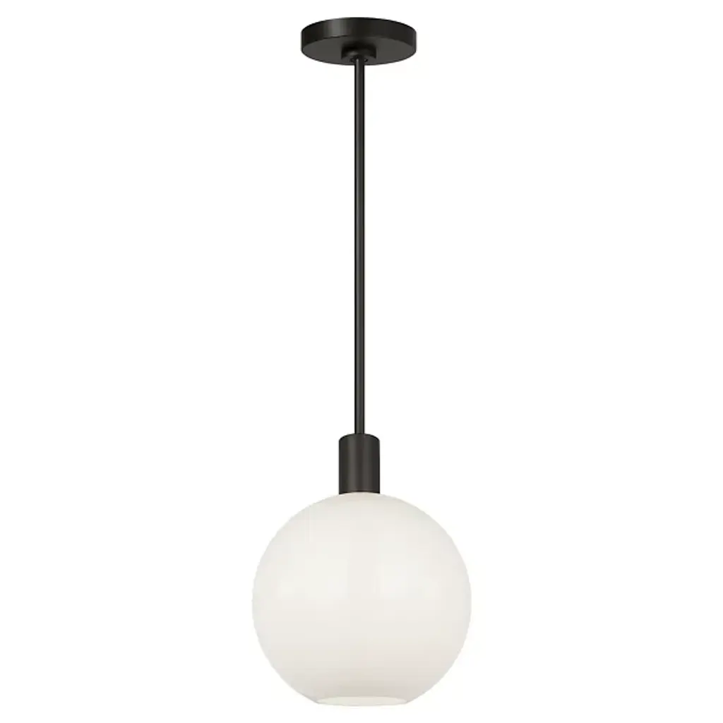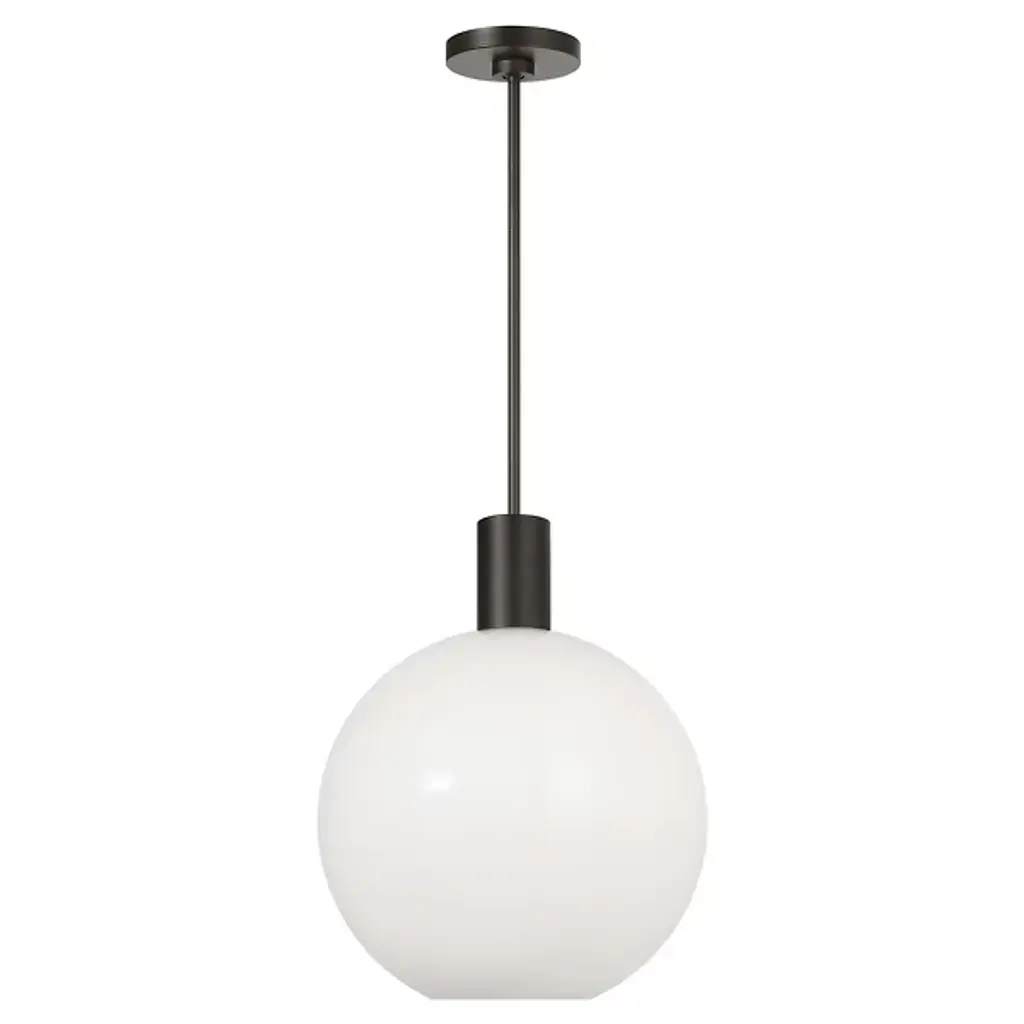 Contemporary clarity with a vintage edge. The Colewood Pendant from Visual Comfort Studio keeps things simple with a slim steel structure, descending from a circle canopy via a single stem. Designed by Drew & Jonathan Scott, it places strong LED light inside a globe-shaped glass shade that is great for tables or other gathering spaces. The translucent material cuts glare to the sides, while an open base leaves room for a vertical spotlight, casting a layered mix of light below.