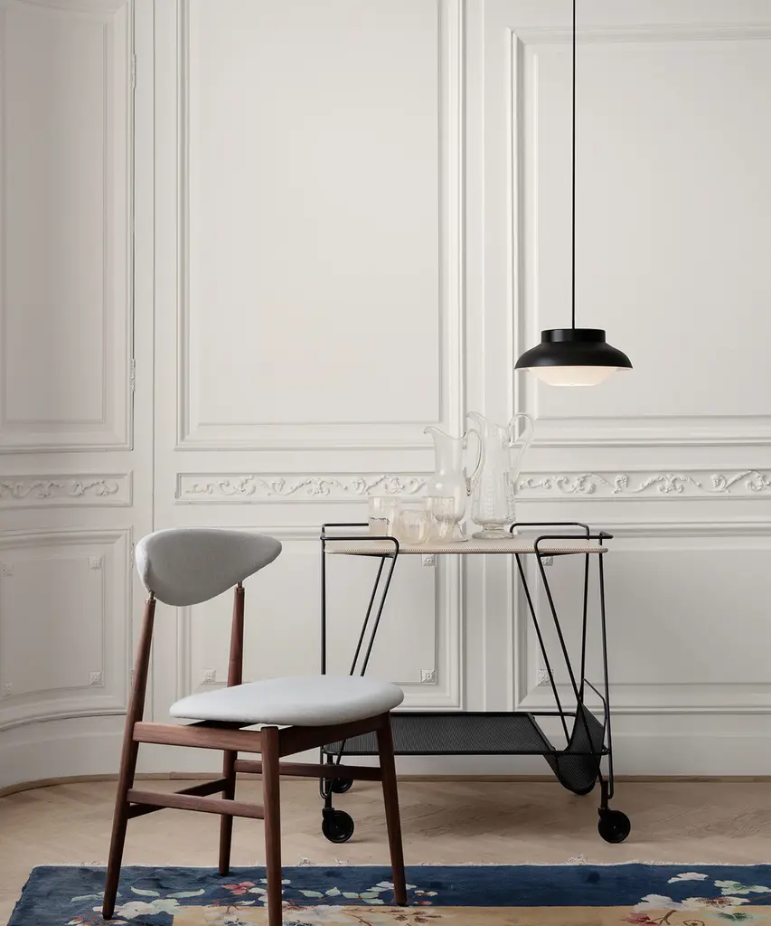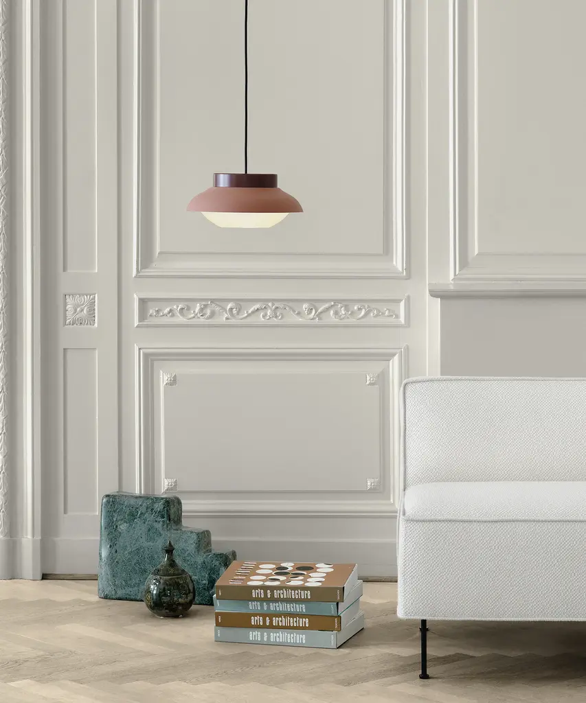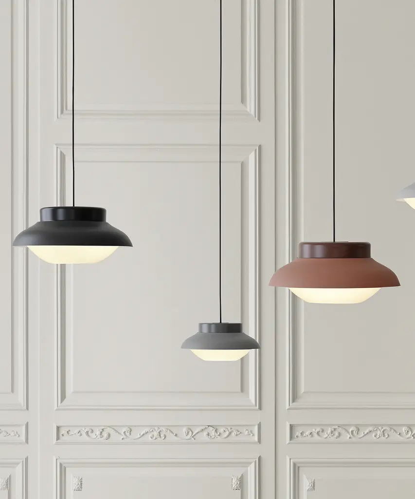 Collar Lamp is the German designer Sebastian Herkner’s first product for GUBI. Collar Lamp is a series of pendent lights that combines mouth blown glass and an aluminum “collar”, used as a reflector, which gives it an iconic strong character. The lamp looks great as an individual lamp but by mixing colours and sizes it gives possibilities for strong personal and playful installations. Designed by Sebastian Herkner for Danish design purveyor, Gubi.