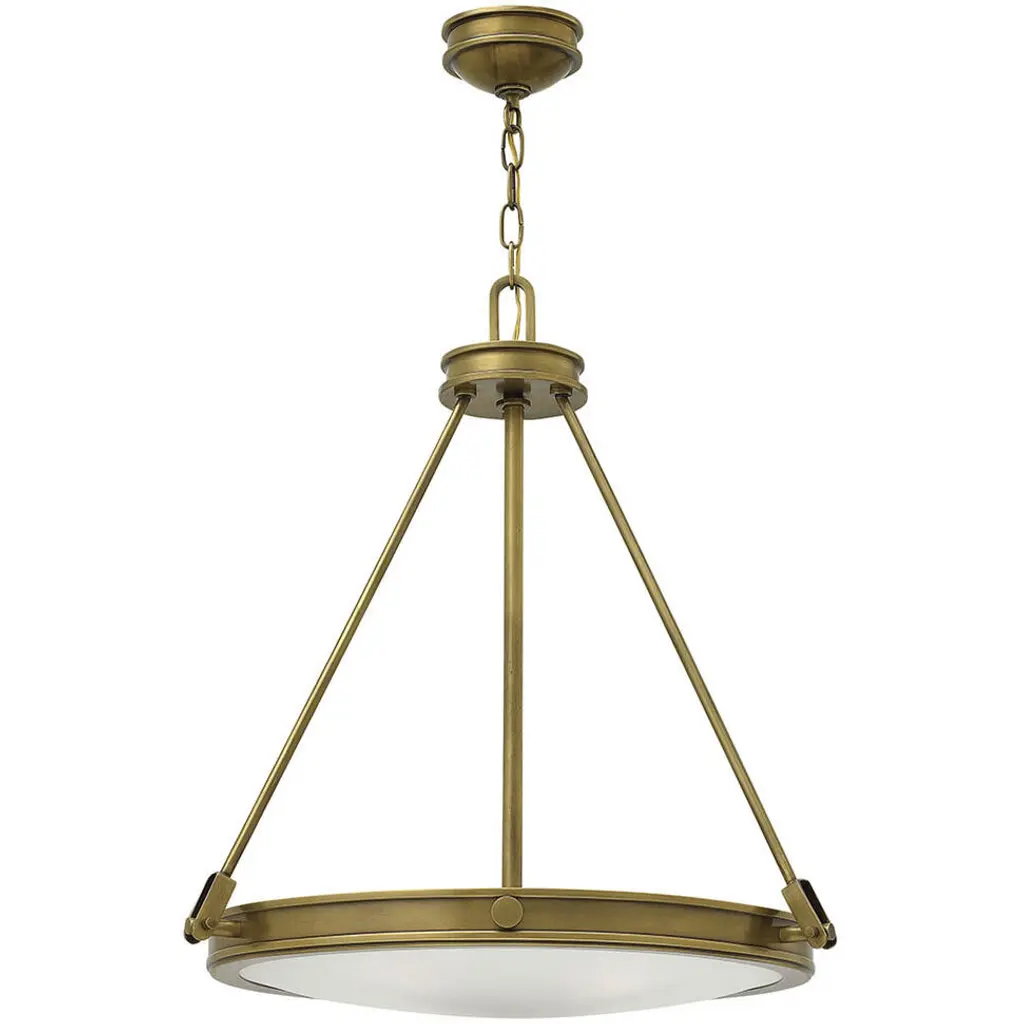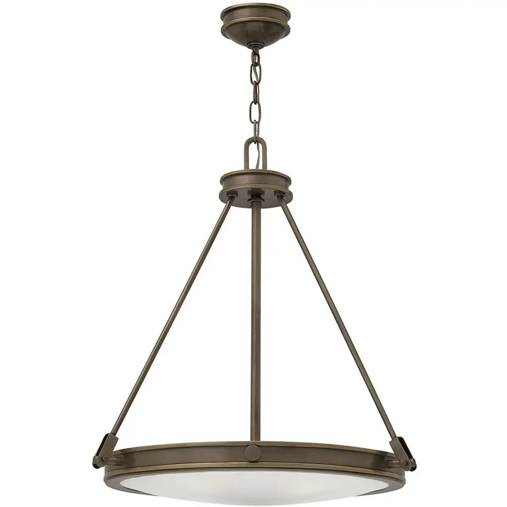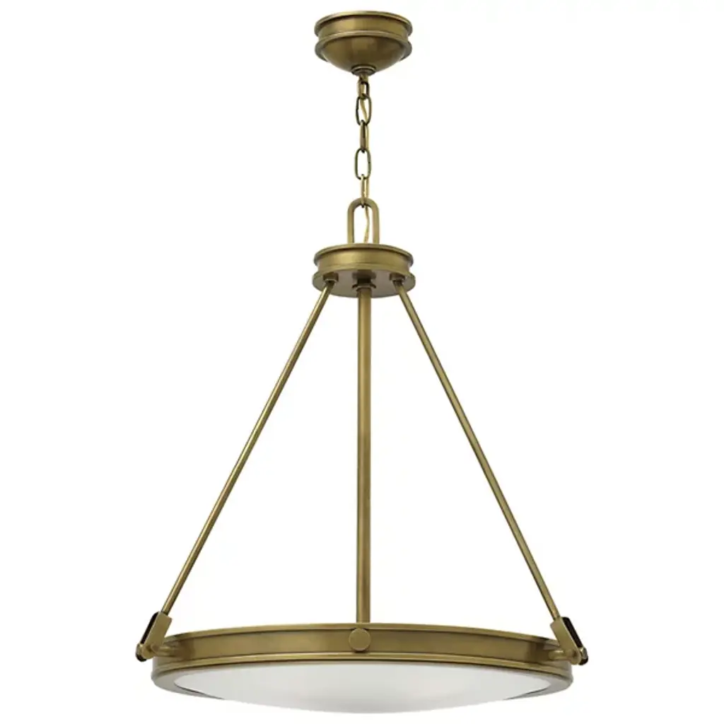 A simple shape with a classic look. The Collier Pendant from Hinkley Lighting is your solution for transitional style lighting. The chain link suspends the pendant, which is a saucer held in place by three descending rods. This pendant is a sleek representation of the cutting edge in retro minimalism, with a mid-century aesthetic and durable steel construction. The bottom of the saucer has a diffuser made out of Etched Opal, which makes sure your living room, dining room, or foyer is filled with a glow that doesn’t have any dark spots or glares.