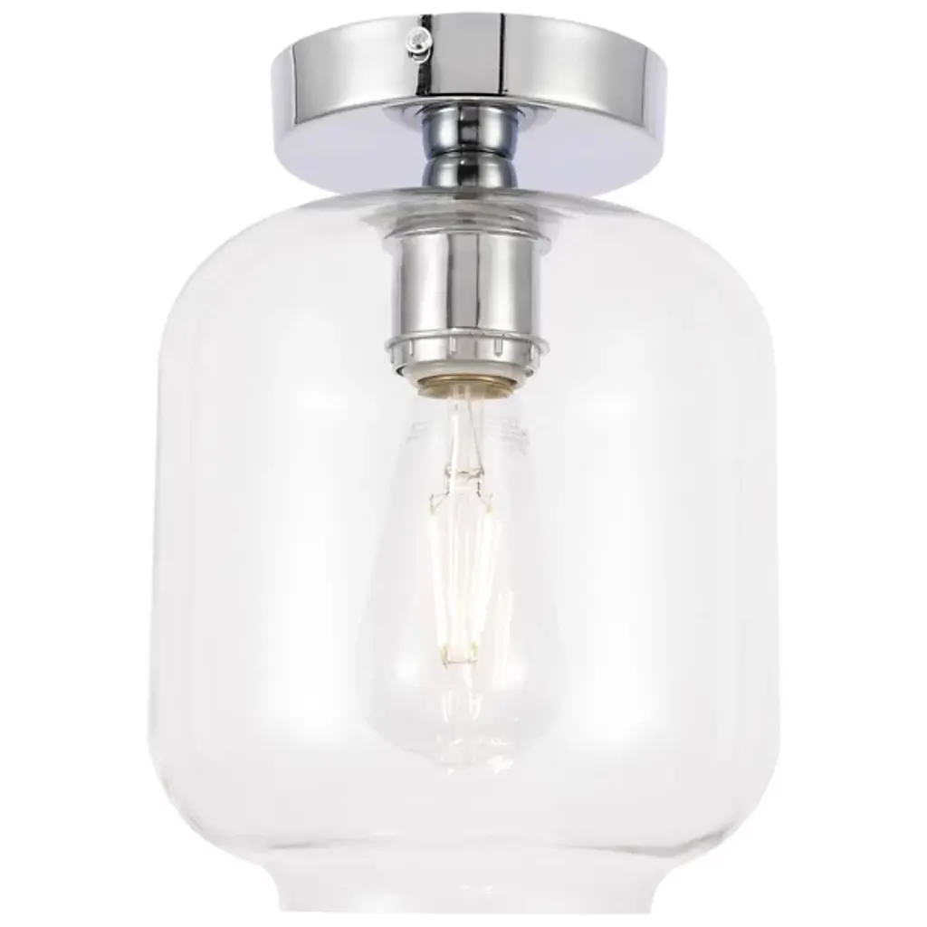 The Collier Semi-Flushmount from Elegant Lighting exemplifies refined simplicity in lighting design. Its clean lines and transparent elements make it a versatile choice for various interior styles. Delicately suspended from a sleek mount, the cylindrical glass shade creates an illusion of light floating in space. This fixture's ability to enhance without overpowering is a hallmark of its sophisticated design. It is ideal for those who appreciate minimalist aesthetics combined with quality craftsmanship.