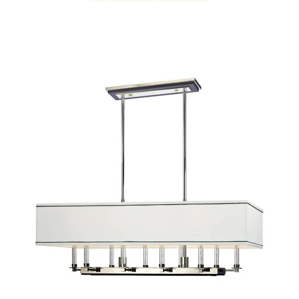 Our Collins family achieves its solid yet breezy dynamism through an array of smart contrasts: dark on light, the sheen on matte, round on square. We set precisely fabricated metalwork against rich cocoa wood, allowing each to enhance the appeal of the other. Textiles soften the fixtures’ modern edges, while black pinstripe detailing on the shades reinforce their linearity. Of particular note are the white cloth wiring visible within transparent glass candle sleeves and the linen of which the shades are woven.