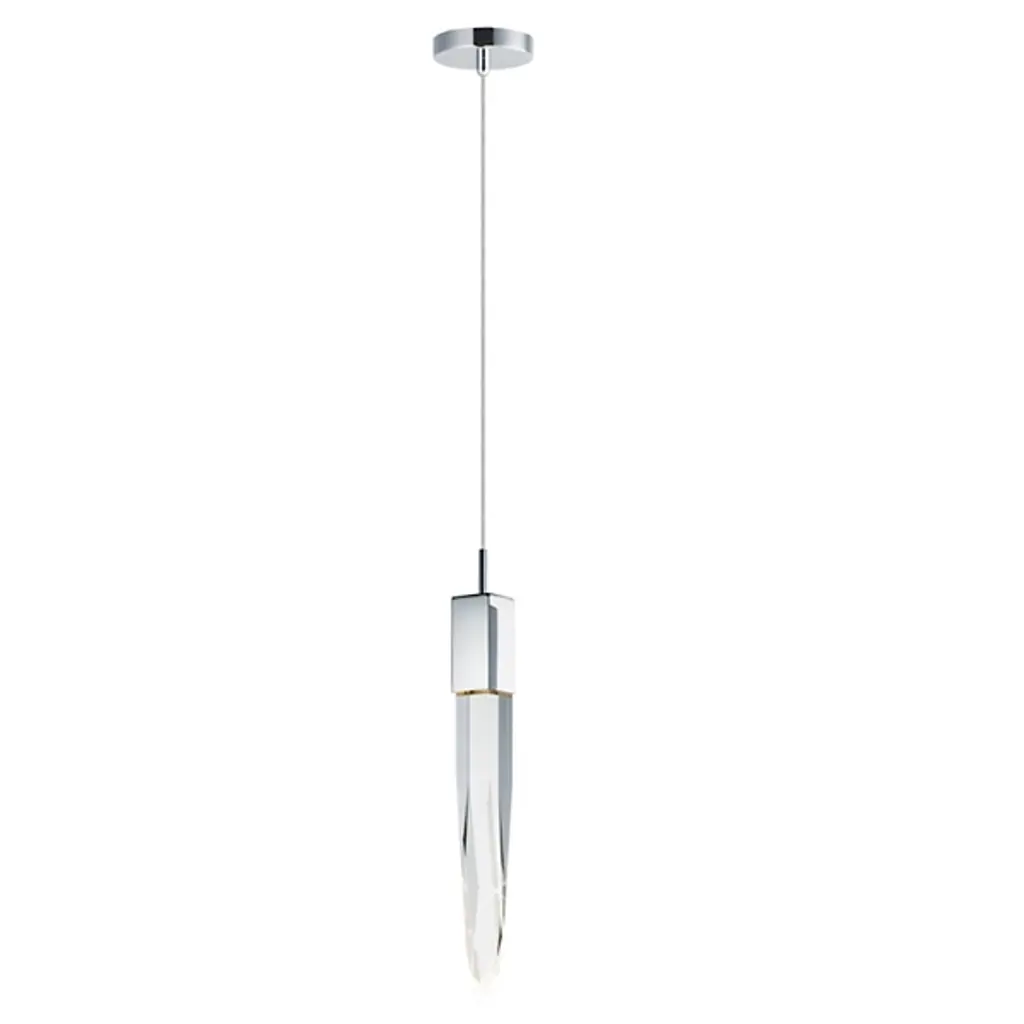 Simple and vibrant, the Colombo LED Mini Pendant from Huxe brings a dazzling display of light to the home. An unassuming, rounded ceiling mount extends a lengthy, thin wire that leads to a solid lamp base and clear beveled crystal that attaches to the base. An integrated LED rests within the base, emitting a clean and welcoming layer of light to the home that diffuses through the stalactite crystal and creates a dynamic play of light and shadow across the walls.