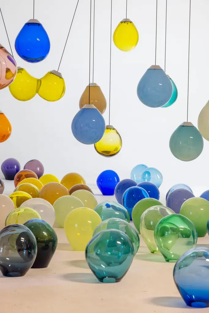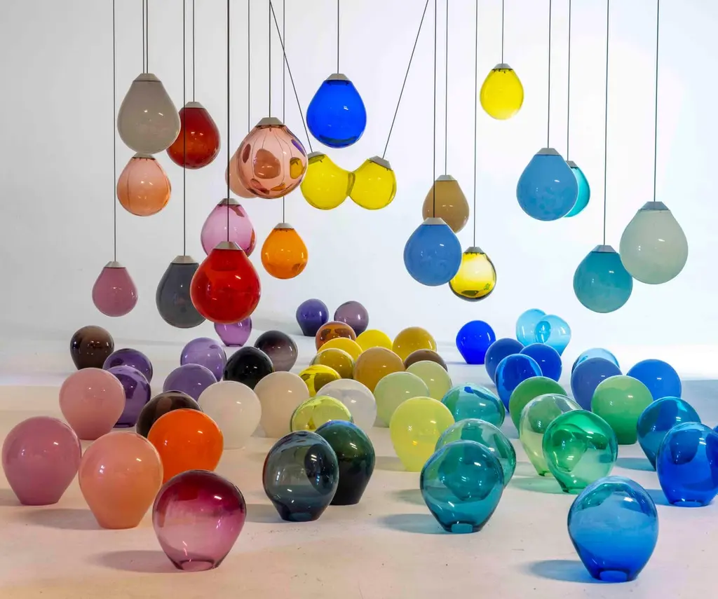 Coloured Double Momentum Blown Glass Pendants By Alex De Witte