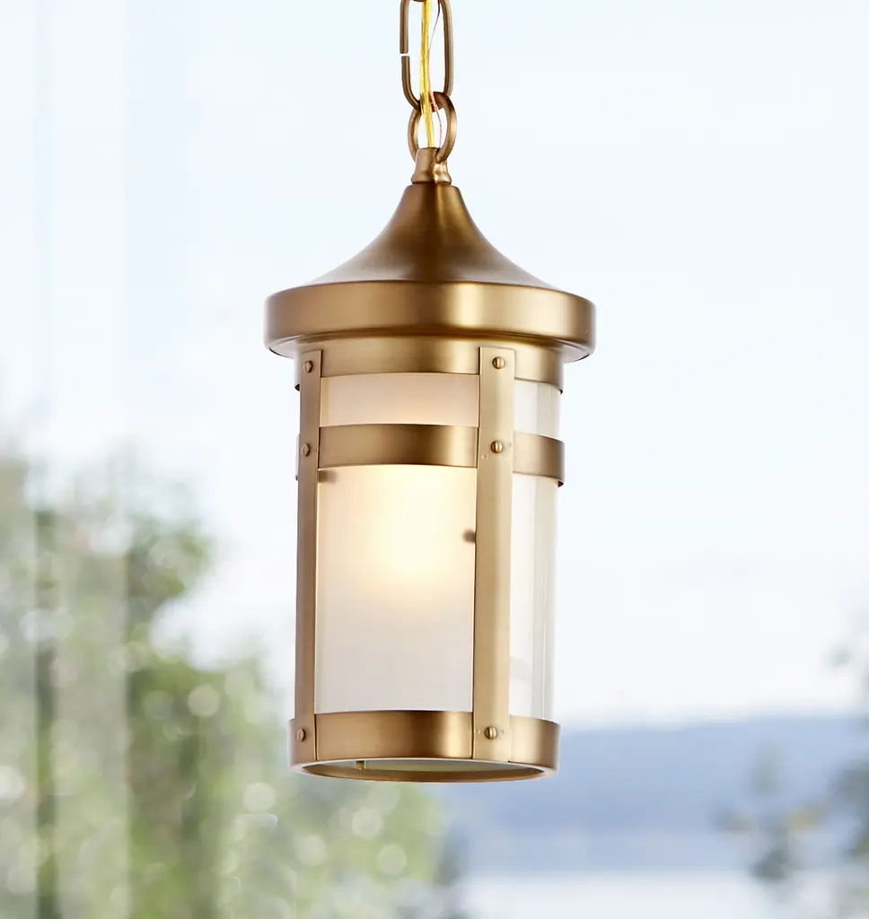 In true Arts & Crafts fashion, the Columbia Small Pendant has no unnecessary frills, but every piece of it is plainly good looking. It's a natural choice to illuminate the porches and entries of bungalows cabins, or cottages. Although lighting technology has evolved from oil to candles to kerosene to gas, and finally, to electricity, we still instinctively seek the warm, low light created by the traditional art-glass lantern. Traditional brass banding and solid brass parts Assembled to order at our Portland, Oregon factory Suitable for indoor and covered outdoor use (UL Rated Damp) Assembled in the USA of domestic and imported parts