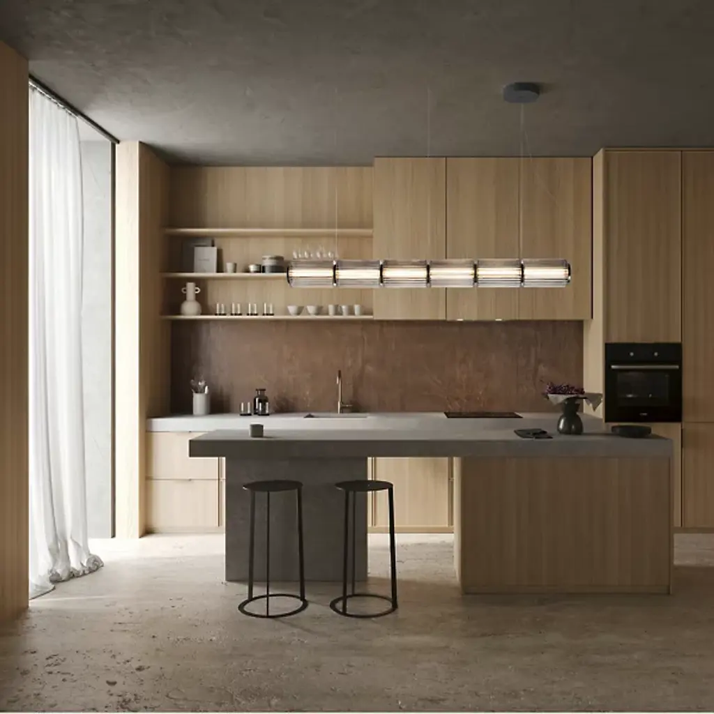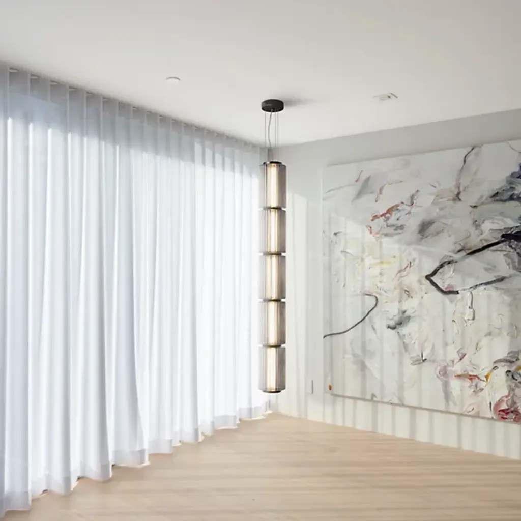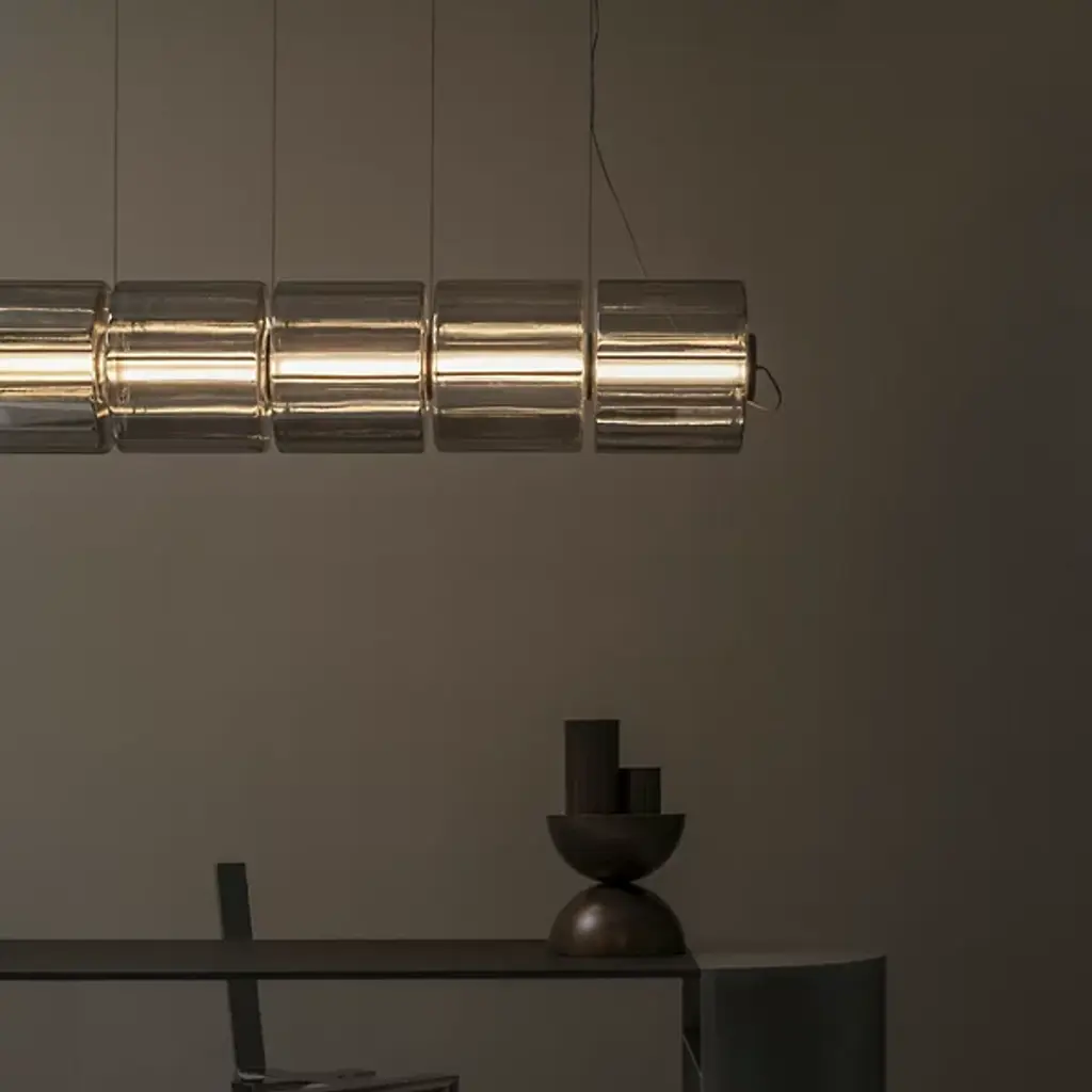 The Column LED Pendant from A-N-D provides unparalleled ambiance and appeal with an elegant spin on classical design elements. A daring design from the inimitable Lukas Peet, it descends from above via a series of slim cables from small anchors, placing strong, integrated LED lamping beneath thick glass cylinder shades blown into moulds that evoke the ribbed surface of Greek doric columns. The textured surface draws the eye and adds an element of intrigue, transforming its surroundings with sculptural appeal and elegant expressions.