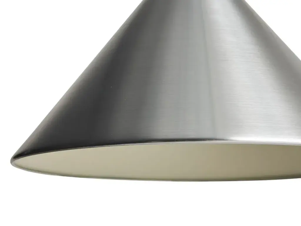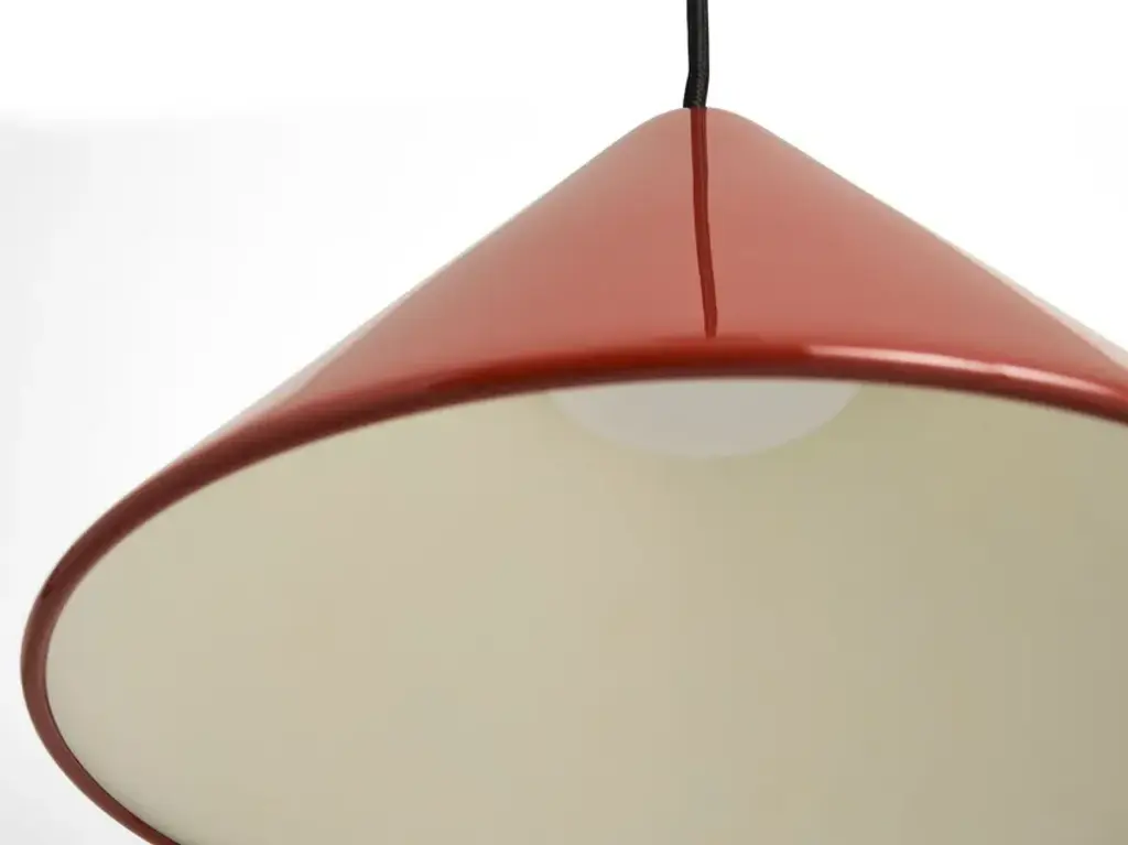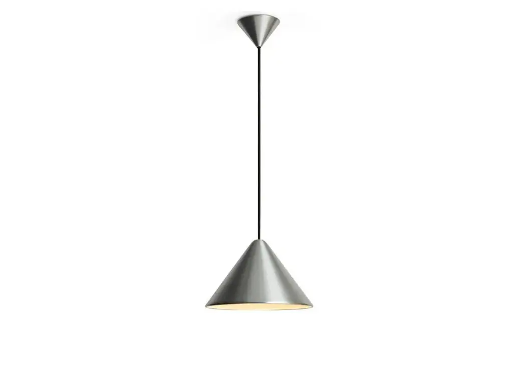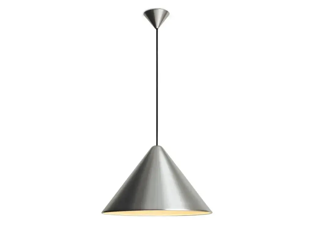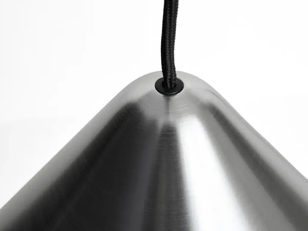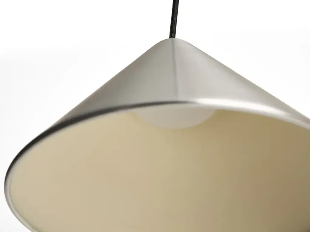 Compass is aluminum LED pendant lamp.MATERIALS:SHADE: Spun aluminium in brushed or wet sprayed finish with bulb holderbracket on insideCEILING CANOPY: Spun aluminium in brushed or wet sprayed finishCOUNTERWEIGHT: Extruded aluminium casing in brushed or wet sprayed finish with diecastend caps. Sand-cast iron weightCORD: Braided textile cable in black with silicone insulationDesigned for HAY by Julien Renault, the Compass Pendant delivers a modern reinterpretation of the classic pendant typology. Centred around a slanted conical shade suspended from the ceiling, the lamp’s uncluttered silhouette offers a refined presence with visual balance. In addition to a traditional static model, Compass is also available in a height-adjustable variant, allowing users to precisely position the light according to their activity – ideal over a table, where the illumination can shift seamlessly between focused tasks and shared meals. Combining functionality with timeless aesthetics, the pendant offers flexible lighting solutions for a wide range of rooms and settings.
