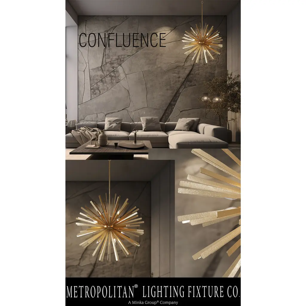 This 16 light Pendant from the Confluence collection by Metropolitan will enhance your home with a perfect mix of form and function. The features include a Piastra Gold finish applied by experts. This item qualifies for free shipping!