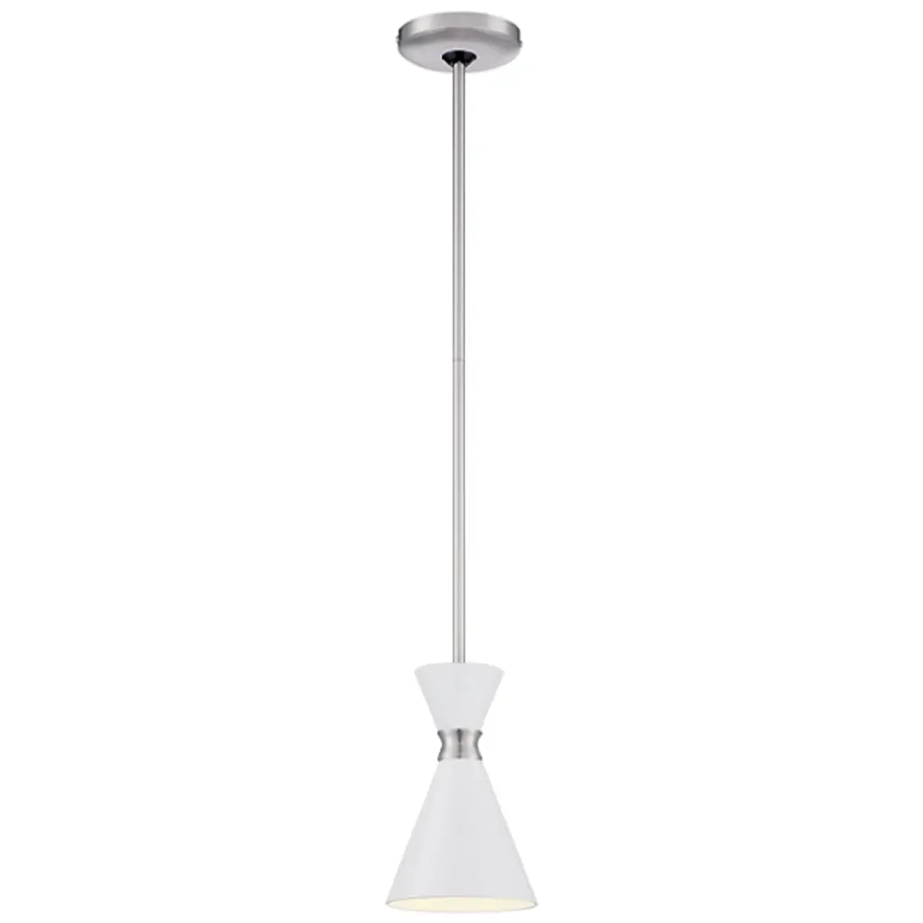 Keep the décor minimal with this geometrical composition. Whether directing light down over a kitchen island or brightening a nook in the living space, the Conic Mini Pendant by George Kovacs makes quite the impression. Its body is formed by fusing two conical structures that are held together with a sleek metal band. This bi-conical structure is suspended from a round ceiling canopy via a sleek downrod. Once in use, light funnels down through the shade, providing a focused coverage of countertops and areas of interest.