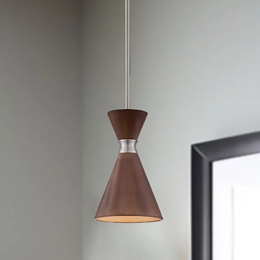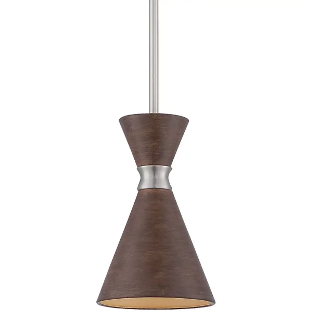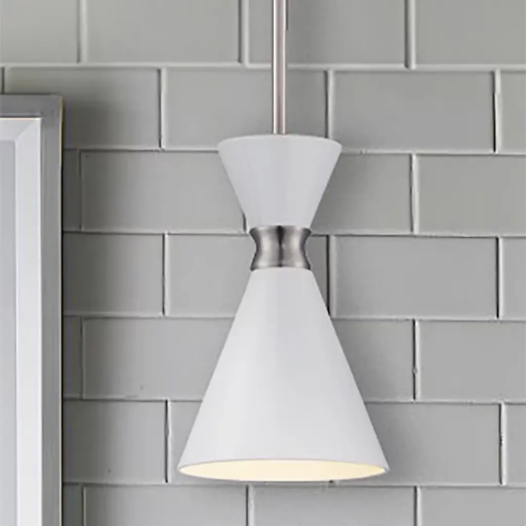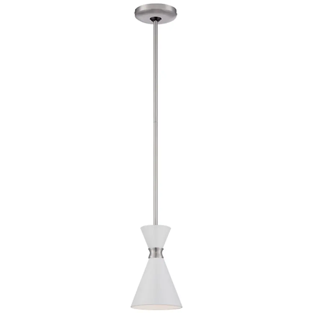 Keep the décor minimal with this geometrical composition. Whether directing light down over a kitchen island or brightening a nook in the living space, the Conic Mini Pendant by George Kovacs makes quite the impression. Its body is formed by fusing two conical structures that are held together with a sleek metal band. This bi-conical structure is suspended from a round ceiling canopy via a sleek downrod. Once in use, light funnels down through the shade, providing a focused coverage of countertops and areas of interest.