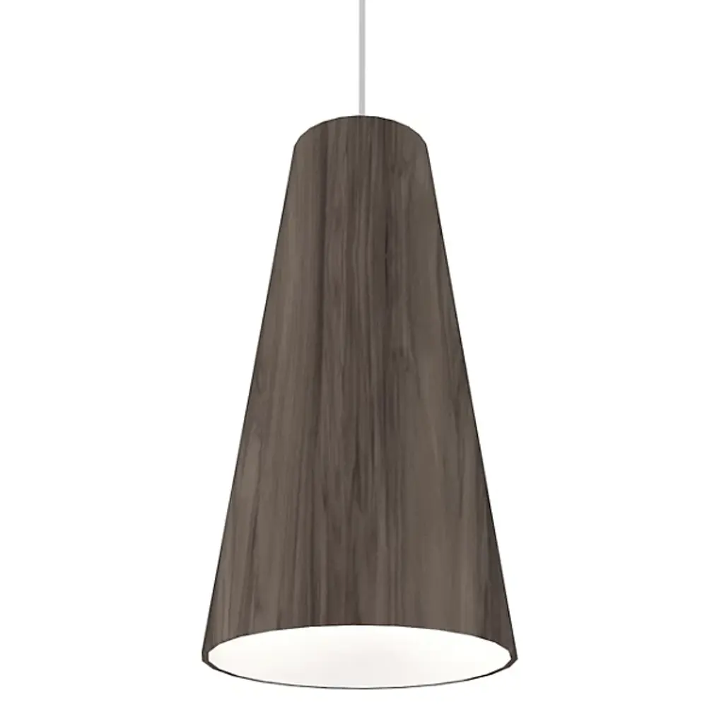 A beautiful interaction of wood and light. Handmade in Brazil, the Conical 1233 Mini Pendant from Accord Lighting gives your rooms an instant sense of refinement. Nothing says refined more than natural wood. The natural wood veneer shade's slim yet solid look is a testament to the traditional techniques used by Accord craftsmen. The cone shade highlights the beauty of pure geometry, especially when suspended in the air with a fine cord. With a single lamp tucked inside its long form, the shade pushes out a soft, diffused down glow.