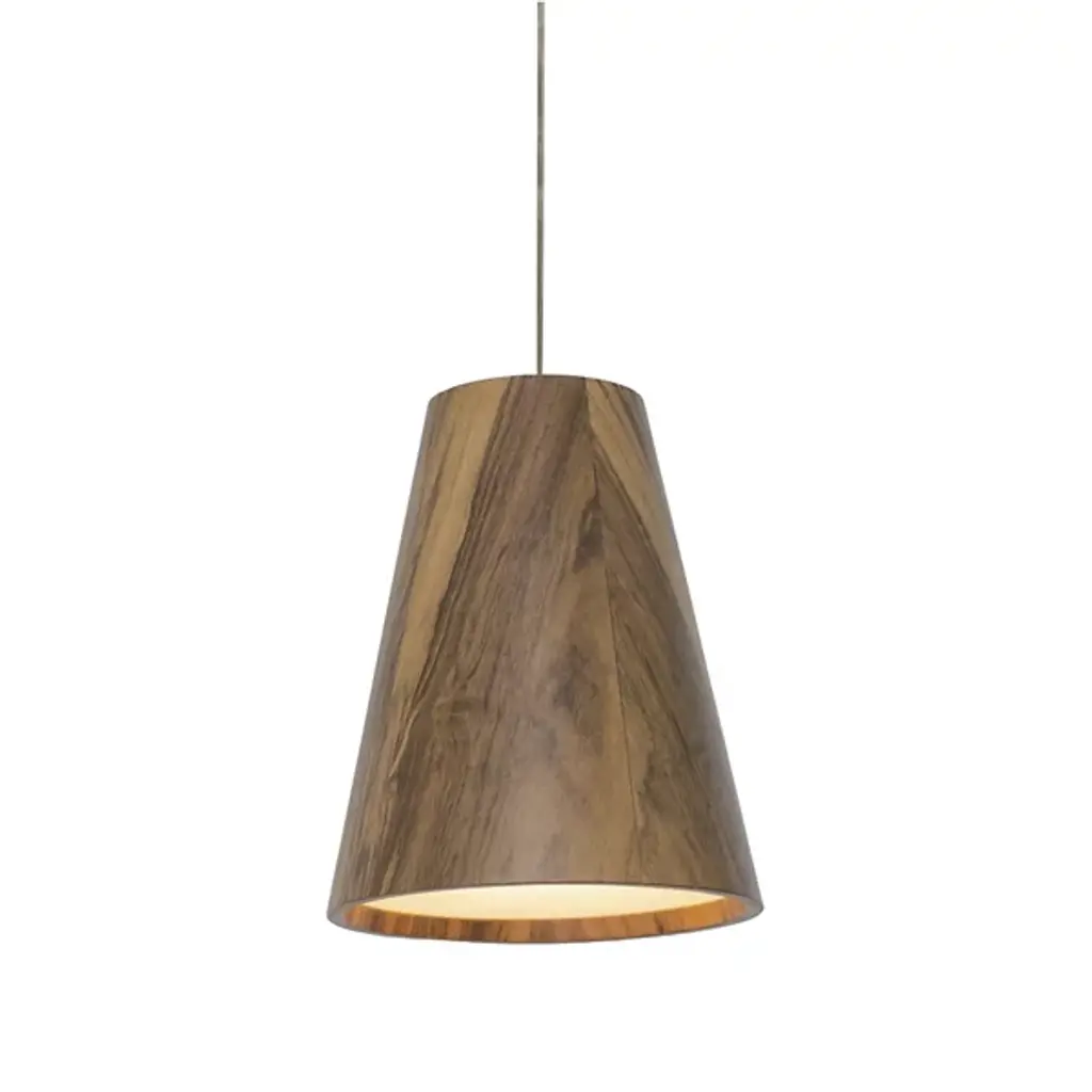 Aesthetically pleasing in more ways than one. Handcrafted in Brazil, the Conical Mini Pendant from Accord Lighting is a beautiful marriage of wood and light serving as a defining feature over a kitchen island, bar, or dining table. It’s a piece that brings focus to your rooms as it hangs neatly in the air as a crisp cone shape. The mathematical precision of the shade sets the stage for painterly contours created by the natural wood veneer’s grain. The eyes flow down the shade and follow the soft stream of light flowing elegantly out the diffuser capped base.