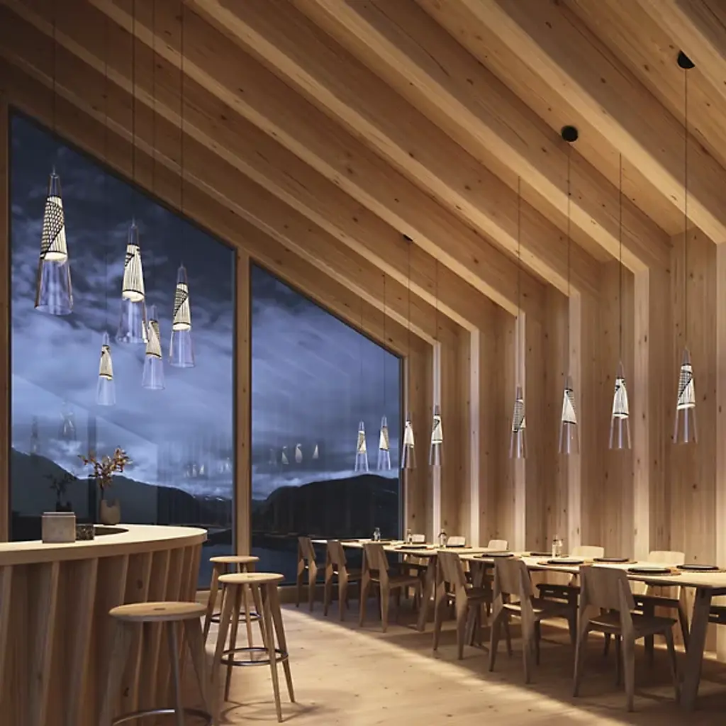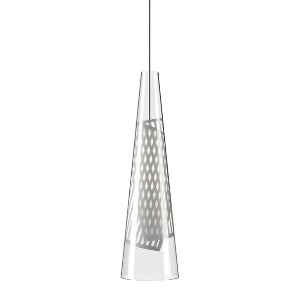 Accessible and efficient, the Cono di Luce LED Mini Pendant from Lodes adds whimsical artistry to contemporary spaces. A design collaboration between Lodes itself and iconic artist and designer Ron Arad, this Energy Star-compliant suspension lamp is made in Italy. It takes its top notes from the company’s high-tech expertise and the artist’s soulful creativity. The pendant is defined by the technology used in its construction, placing a curled, flexible printed circuit board that features the LED lamping inside a conical shade of robust Pyrex glass. The layered nature of the fixture relies on the minimalist frame to keep it in place, adding style and subtle shadows to the fixture’s form, while a swirling signature of the fixture’s name graces the curled circuit board.