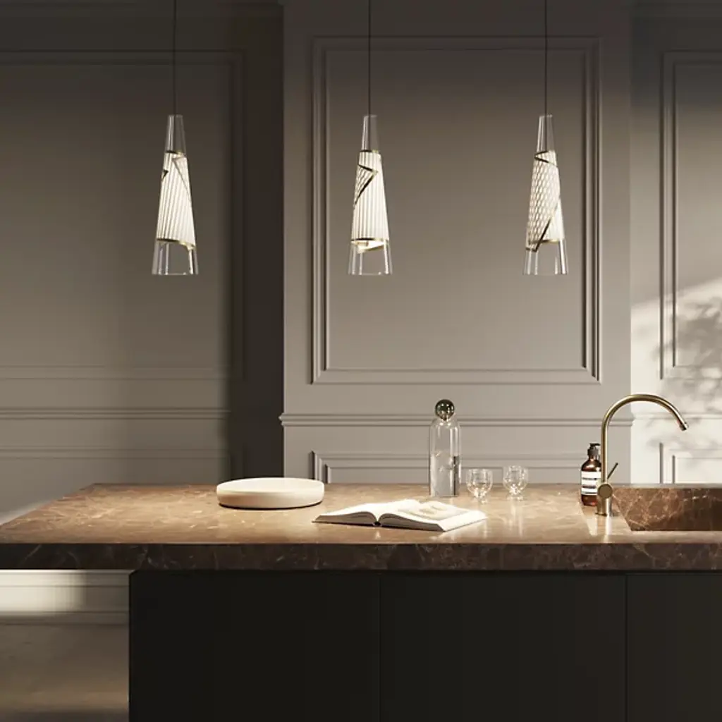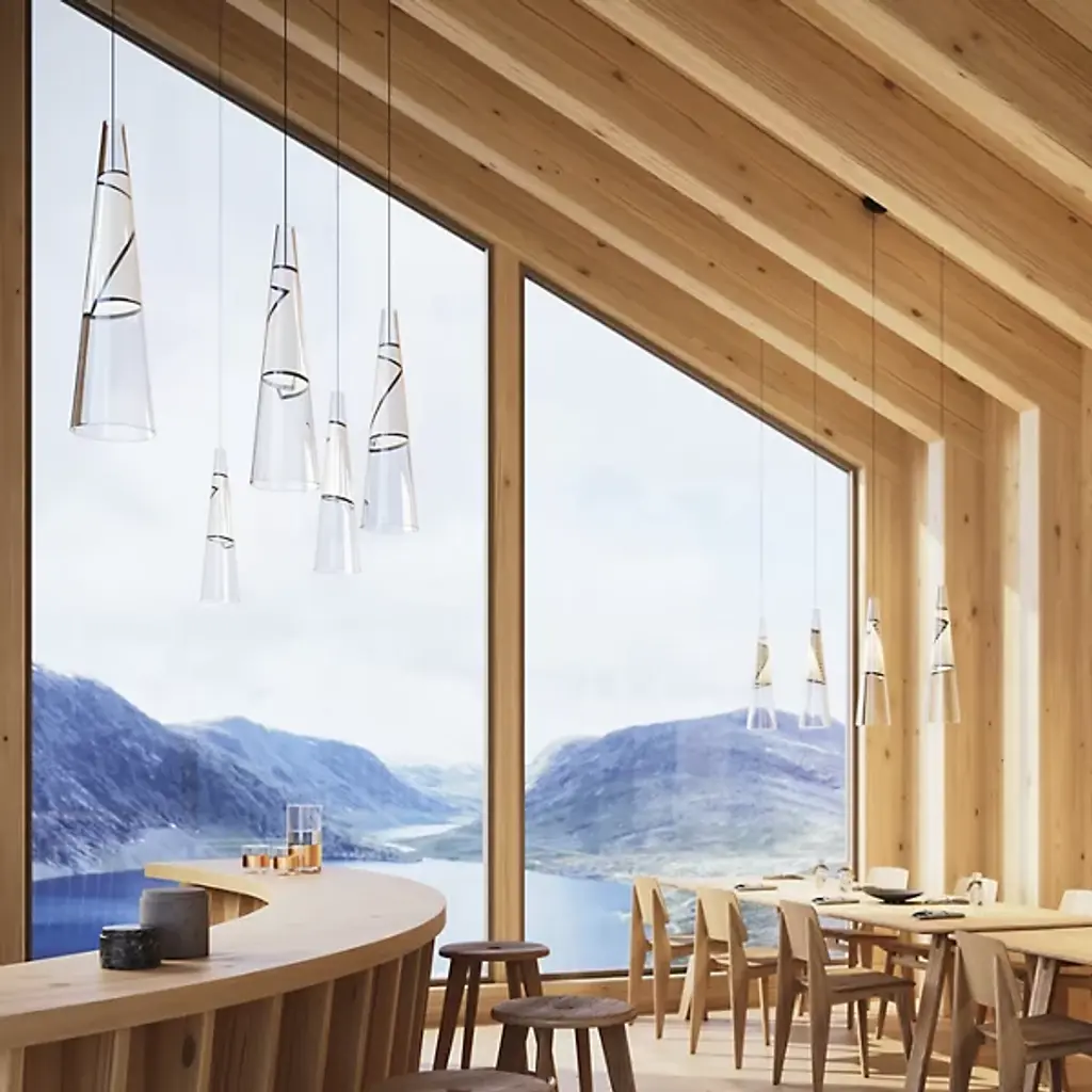 Accessible and efficient, the Cono di Luce LED Mini Pendant from Lodes adds whimsical artistry to contemporary spaces. A design collaboration between Lodes itself and iconic artist and designer Ron Arad, this Energy Star-compliant suspension lamp is made in Italy. It takes its top notes from the company’s high-tech expertise and the artist’s soulful creativity. The pendant is defined by the technology used in its construction, placing a curled, flexible printed circuit board that features the LED lamping inside a conical shade of robust Pyrex glass. The layered nature of the fixture relies on the minimalist frame to keep it in place, adding style and subtle shadows to the fixture’s form, while a swirling signature of the fixture’s name graces the curled circuit board.