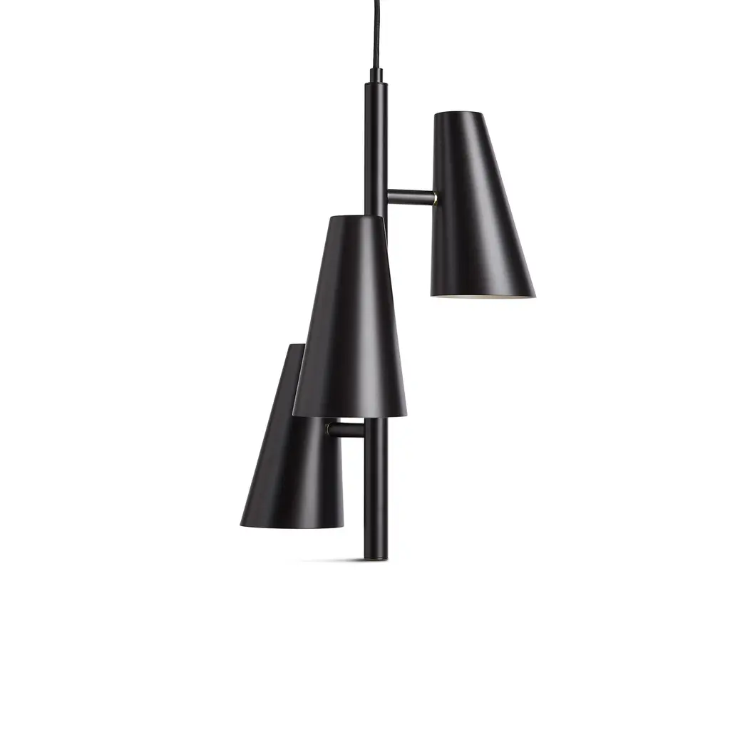 The Cono Three-Shade Pendant is an embodiment of elegance and balance, bringing a symmetrical design aesthetic to any space. Crafted by the insightful Benny Frandsen for Woud, this pendant light features three conical shades that are meticulously suspended in a linear arrangement. It’s a luminary that not only provides ample lighting but also acts as a sculptural piece, commanding attention with its poised presence. Available in the choice of satin gray or matte black finishes, the pendant offers a versatile palette to complement an array of interiors from the starkly modern to the warmly traditional. Each shade is adjustable, allowing for the direction of light to be tailored to the setting—be it over a dining table, a kitchen island, or a workspace. The Cono Three-Shade Pendant demonstrates a mastery of minimalist design, providing a focused light that is as functional as it is aesthetically compelling.