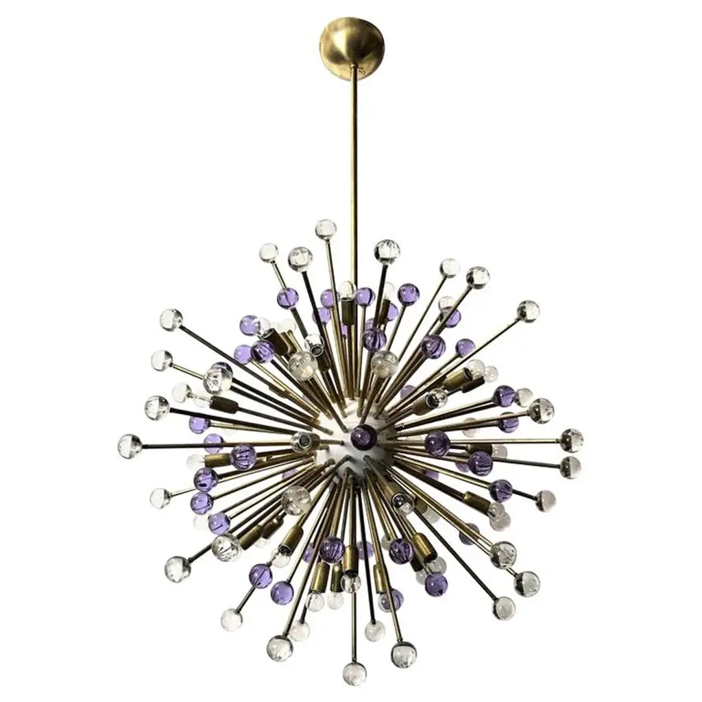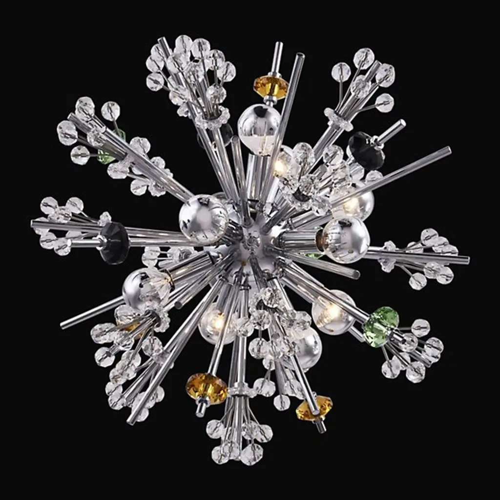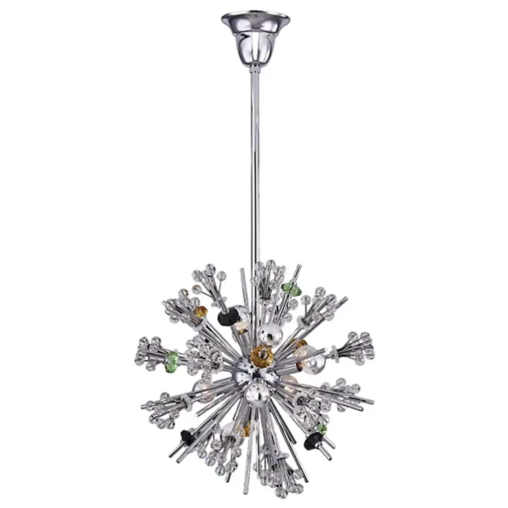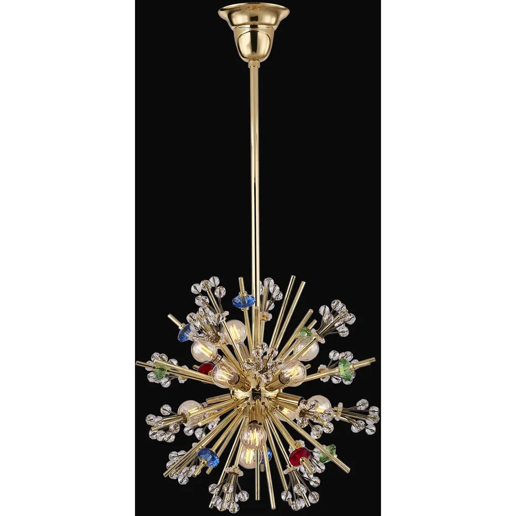 The Constellation 10 Light Pendant is directly inspired by the infamous chandeliers in the Lincoln Center's Metropolitan Opera House first installed in the 1960s. Bursting with energy in the form of extruding rods topped with crystal clusters, this pendant has a very dynamic presence. Deriving from the inspiration but scaling it down for residential use; Allegri, a division of Kalco lighting, is proud to present their Constellation Collection.