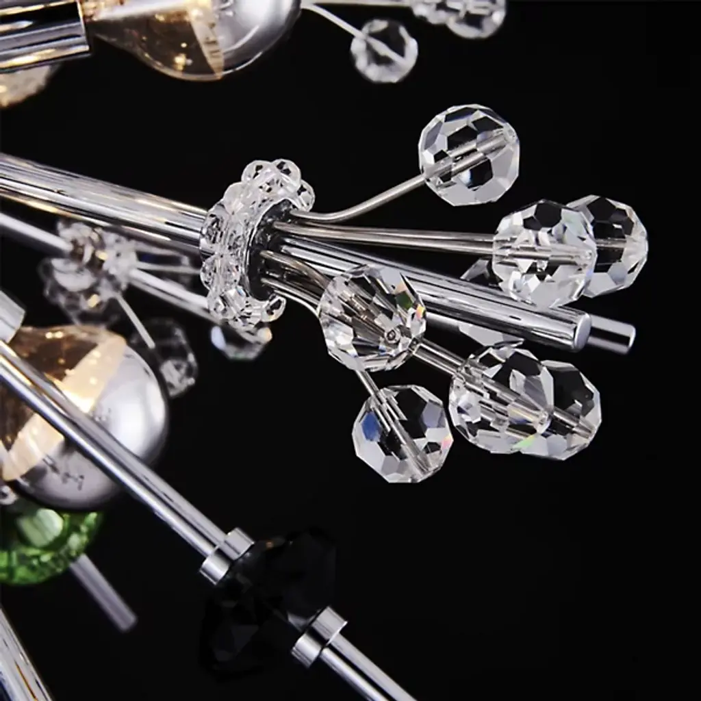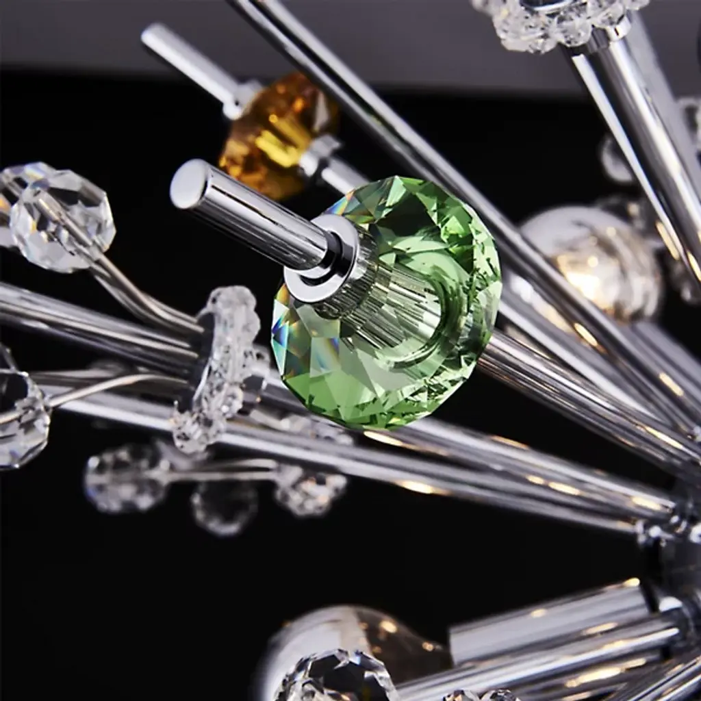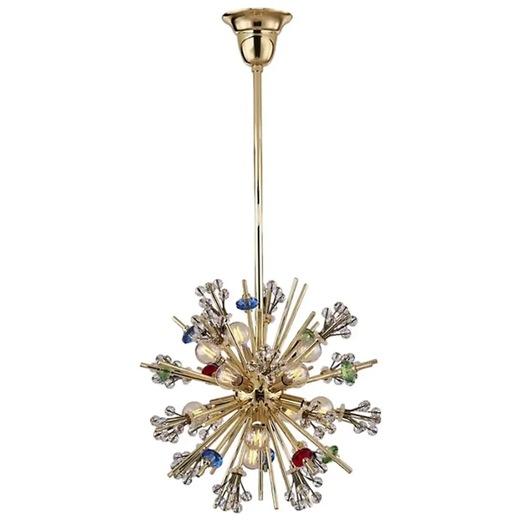 The Constellation 10 Light Pendant is directly inspired by the infamous chandeliers in the Lincoln Center's Metropolitan Opera House first installed in the 1960s. Bursting with energy in the form of extruding rods topped with crystal clusters, this pendant has a very dynamic presence. Deriving from the inspiration but scaling it down for residential use; Allegri, a division of Kalco lighting, is proud to present their Constellation Collection.