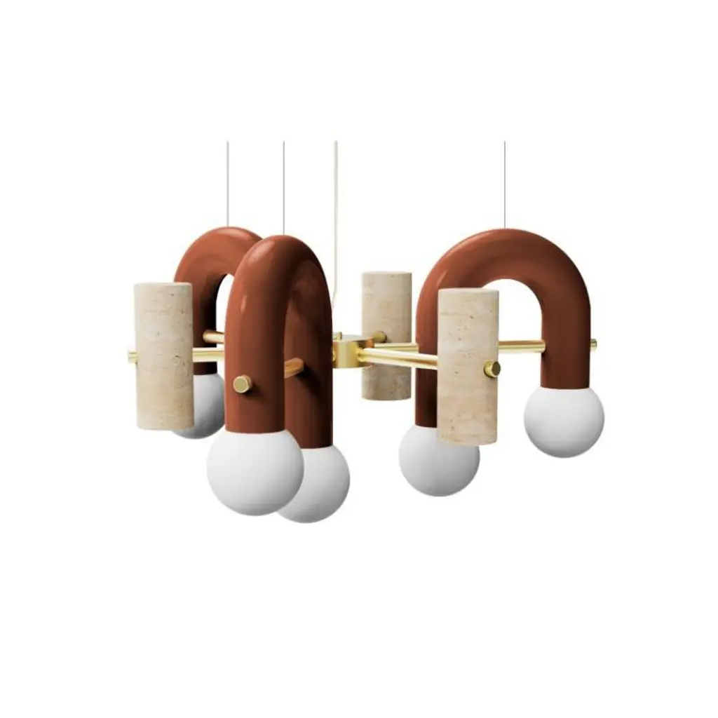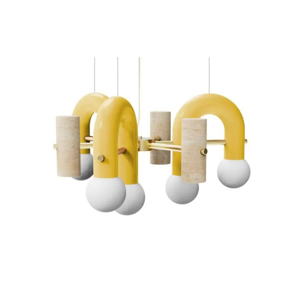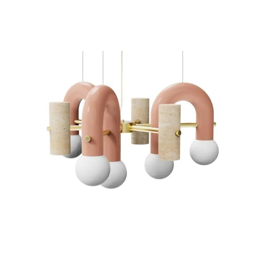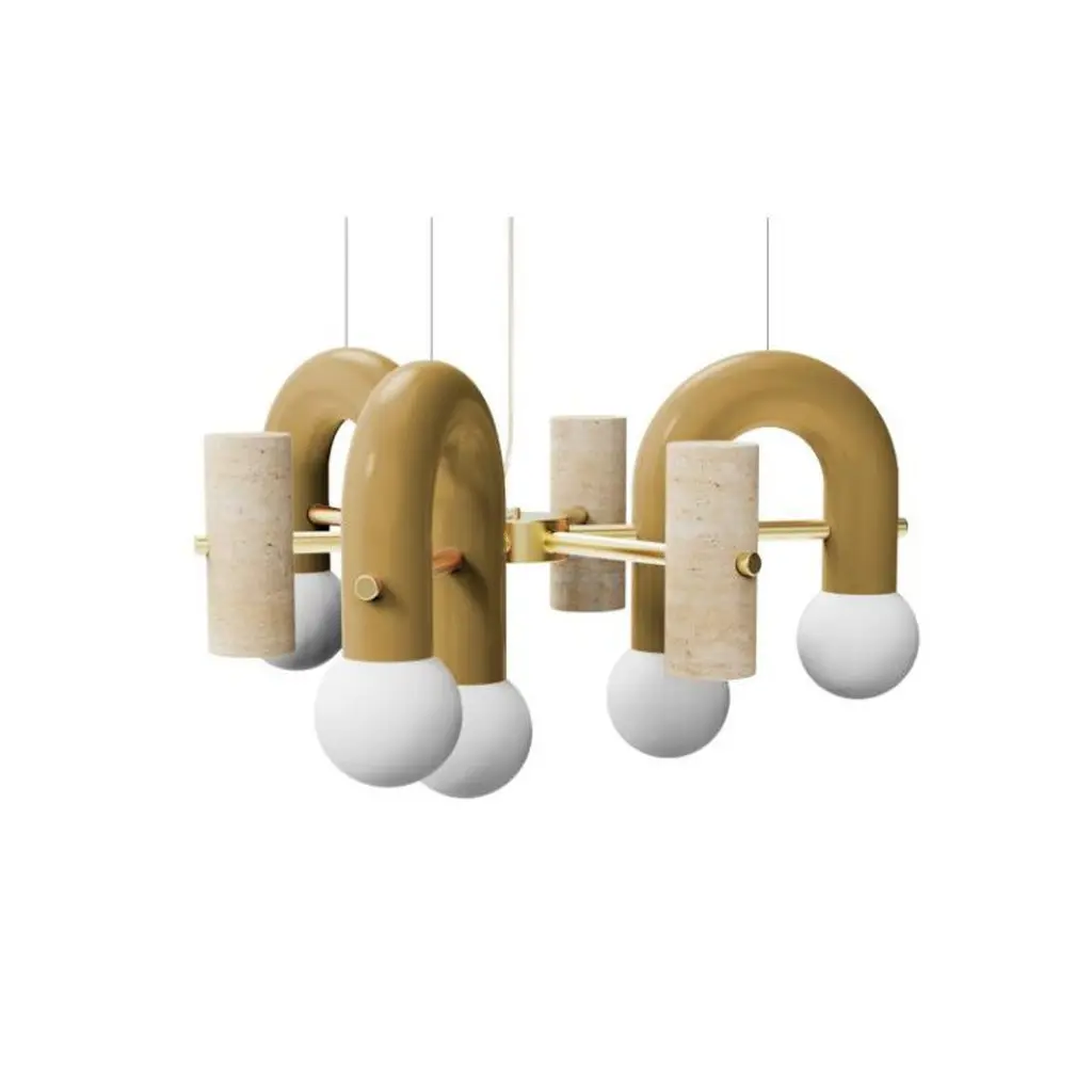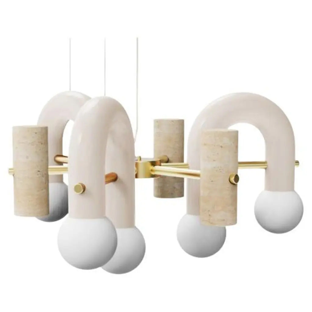 Pairing smooth and rough surfaces that contrast with one another, Art Deco inspired Pyppe lamp collection gives way to a new approach in shape and balance. Emphasizing the tension between mass and shape, it provides soft points of interaction that connect sinuous and delicate forms with poised proportions. A collection that is raw and expressive yet sophisticated, where each lamp complements each other but can ultimately exist on its own.Tubular shapes finished in a smooth homogeneous Powder-coating finish and a delicate Polished Brass structure and a carefully sculpted Travertine stone give shape to this elegant Pendant. Finally, soft light is diffused with its Frosted Glass Globes.Other colors available see more images on this listing.Made to order and color customizable.Utu Lamps is part of the Mambo Unlimited Ideas design group from Portugal.Utu’s contemporary aesthetic results in original top-quality luminaries with international inspiration while rooted in the local knowledge.Each product is handmade in Portugal by our craftsman using time-honored techniques honed over centuries. Materials are thoughtfully combined and carefully finished.
