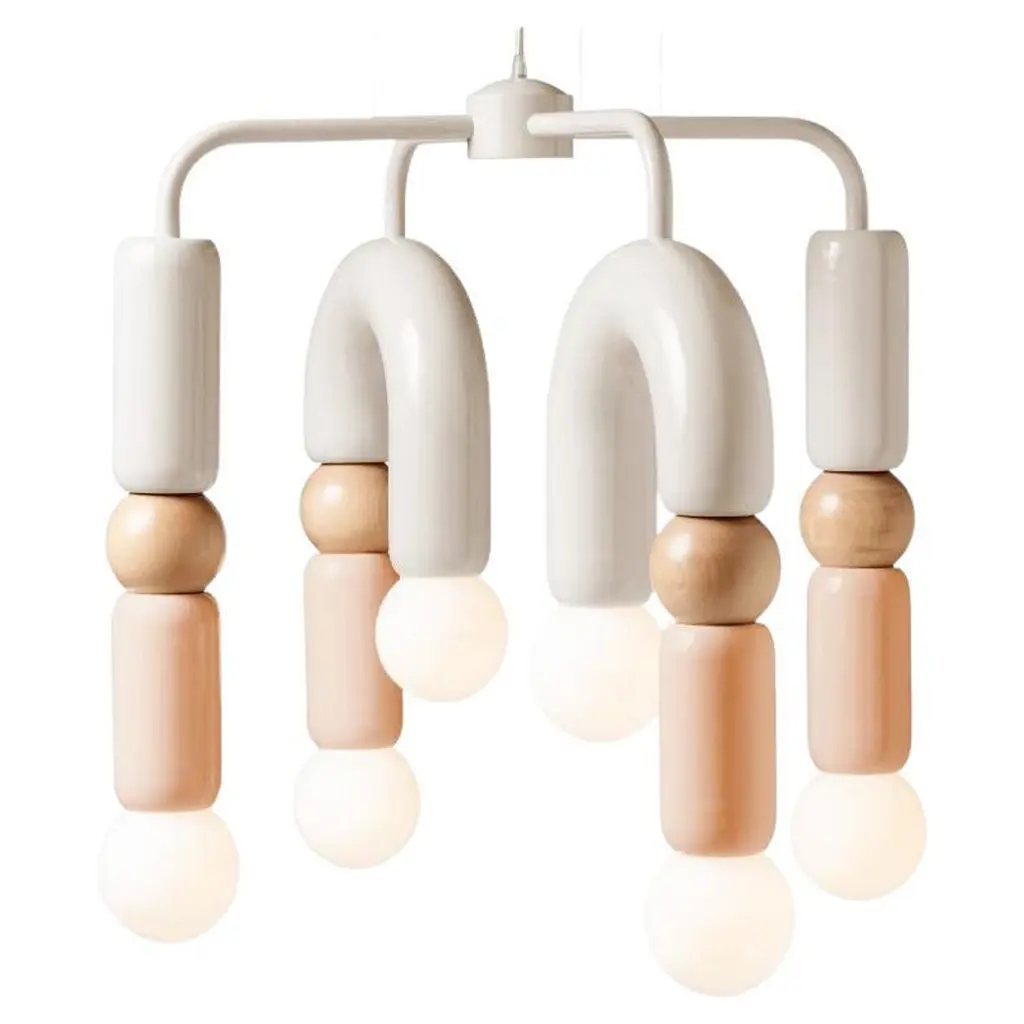 Contemporary Art Deco Pendant Lamp Play V In Taupe, Sage And Natural Oak By Utu