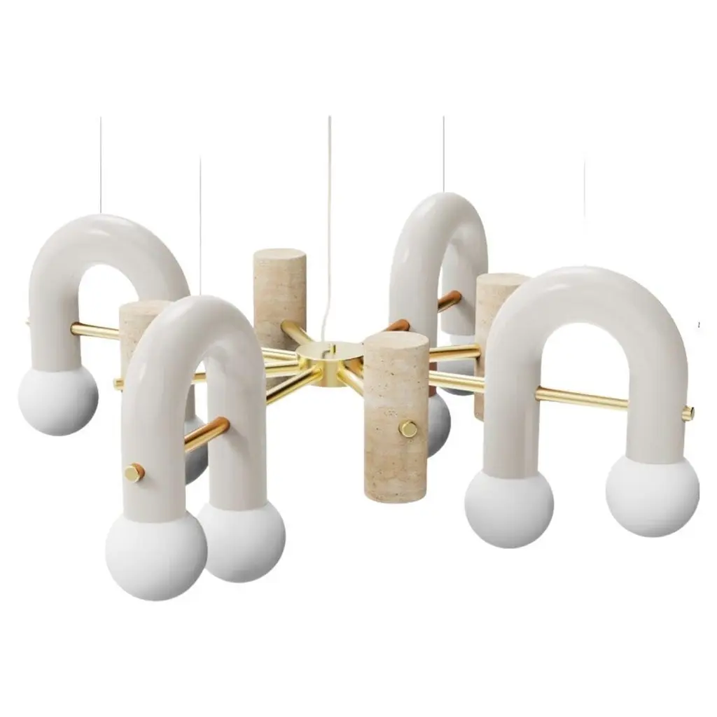 Contemporary Art Deco Pendant Lamp Pyppe 100 In Brass, Ivory, Travertine By Utu